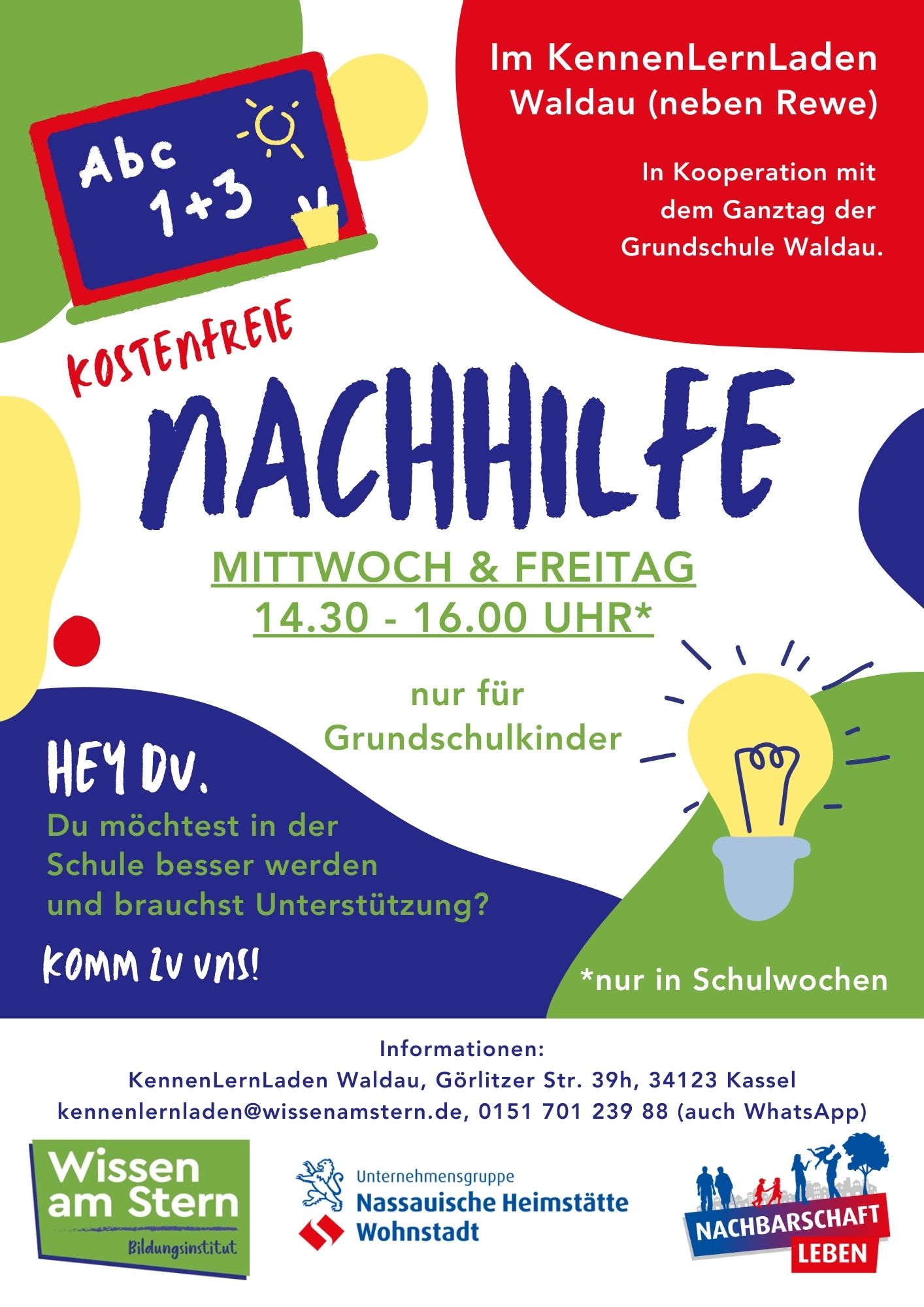 Das Angebot findet im KennenLernLaden Waldau (Görlitzer Straße 39h, neben Rewe, 34123 Kassel) mittwochs und freitags von 14:30 bis 16:00 Uhr in den Schulwochen statt. Während dieser Zeit ist auch der Leseclub der Stiftung Lesen geöffnet.