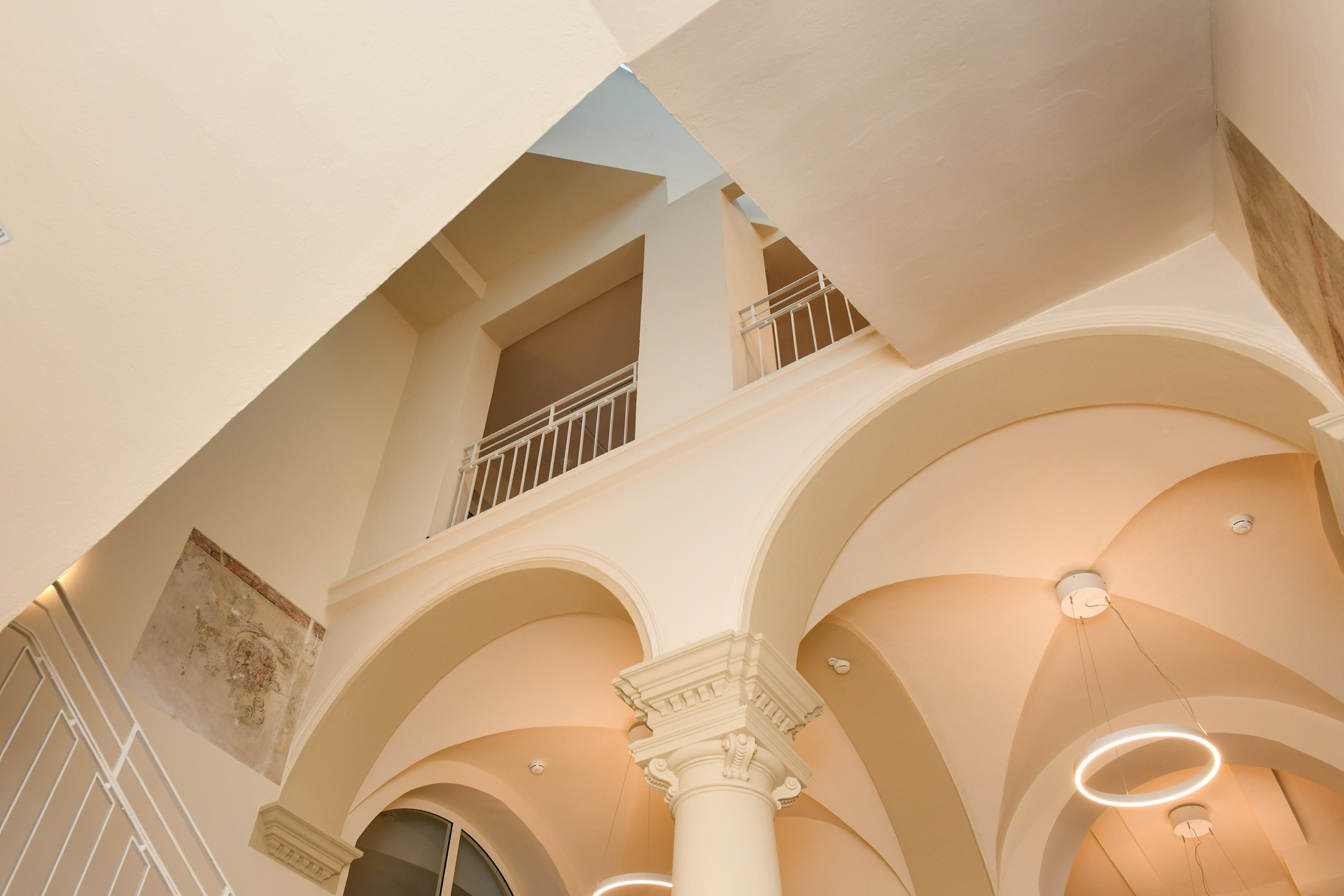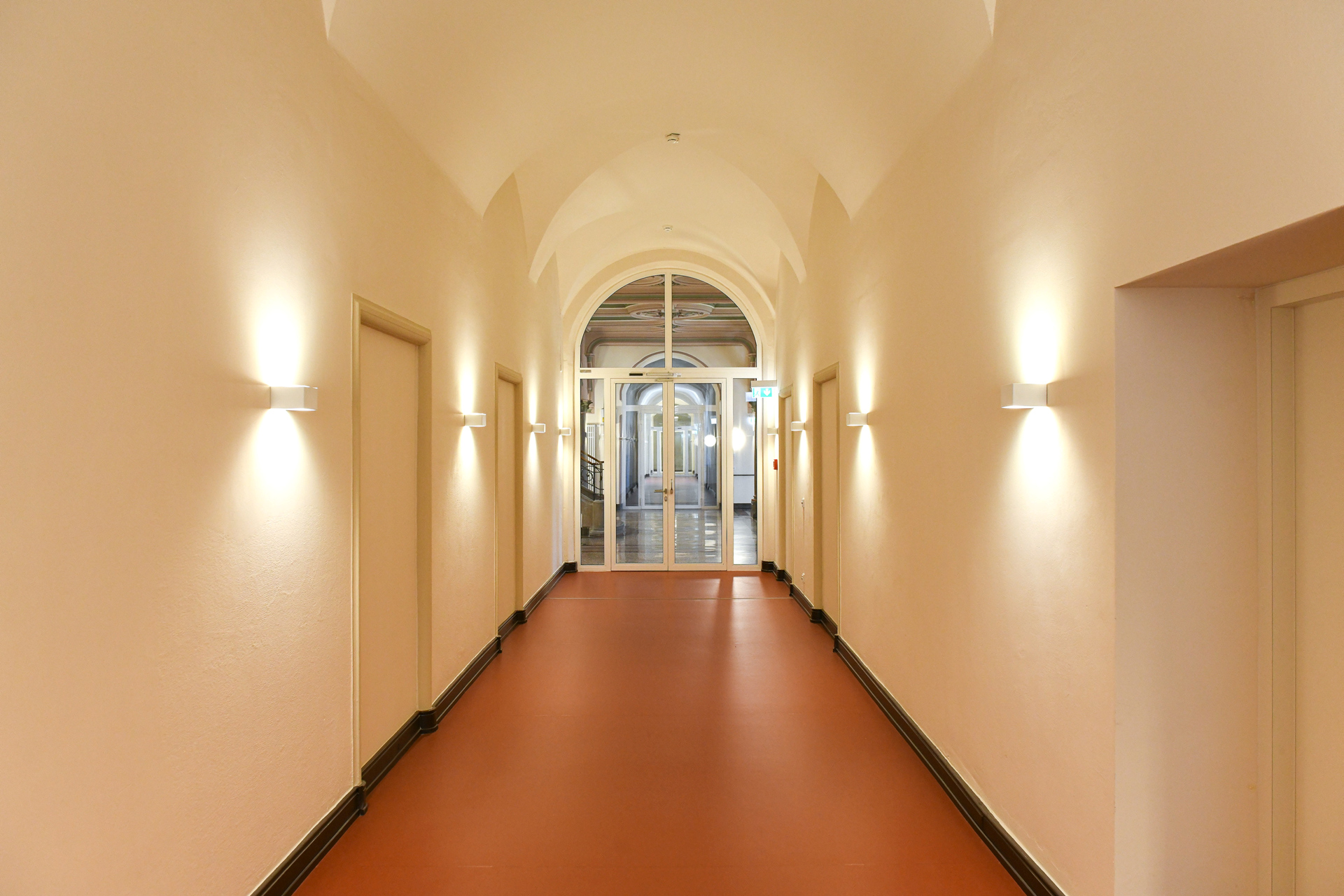 Auch historische Türen wurden ähnlich behandelt und das Dachgeschoss wurde ausgebaut, wodurch zusätzlicher Wohnraum von ca. 900 m² entstand. Durch die Verwendung vorhandener Bausubstanz wurde graue Energie eingespart, die sonst für einen Neubau aufgewendet worden wäre. Die Verbesserung der Dämmqualitäten bei Fenstern, Kellerdecken und Dächern trug zur Reduktion des Heizenergiebedarfs bei. Das Projekt unterstreicht zudem die städtebauliche Bedeutung für die südliche Innenstadt Wiesbadens, einschließlich der Umwandlung der Gerichtsstraße in eine Fußgängerzone und der Nutzung einiger Räume als Gewerberäume, die der Öffentlichkeit zugänglich sind.