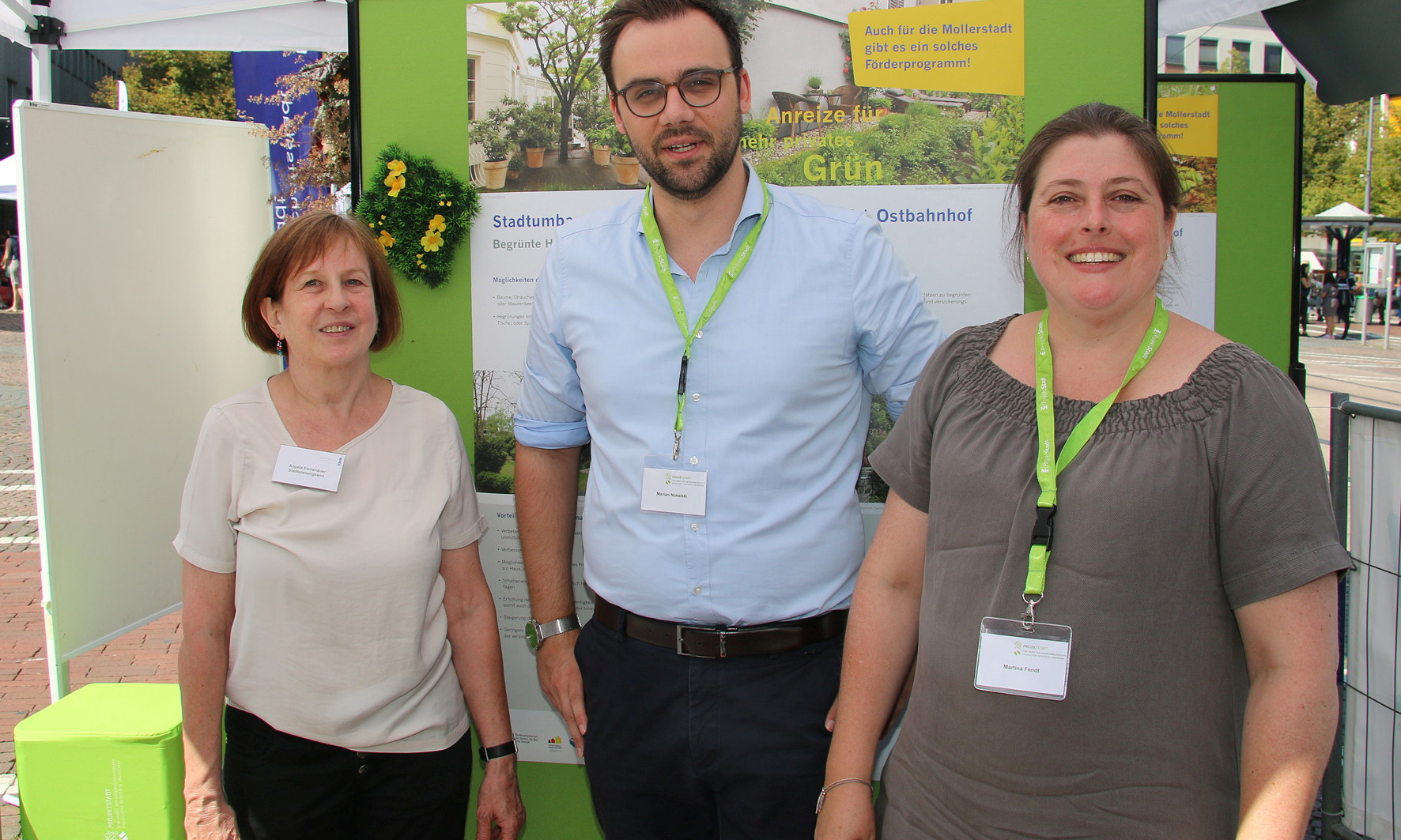 Die ProjektStadt informiert auf der Umweltbörse Bürgerinnen und Bürger über die Stadtumbaumaßnahmen. Foto: NHW / Sabine Antonius