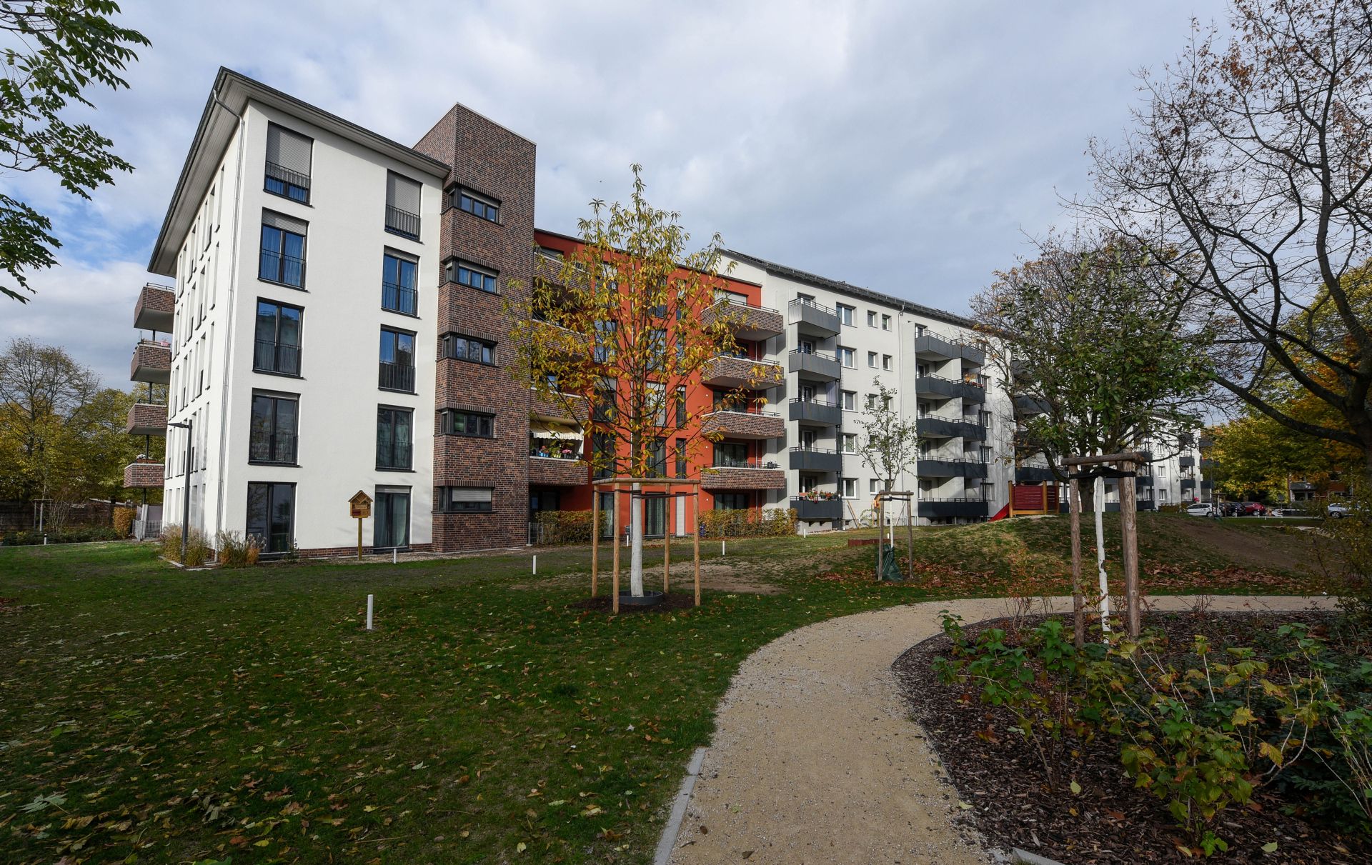 Zweifach ausgezeichnet: Die NHW bekam für die Adolf-Miersch-Siedlung die DGNB-Plakette in Gold sowie eine Anerkennung beim Bundespreis UMWELT & BAUEN. Foto: NHW / Marc Strohfeldt