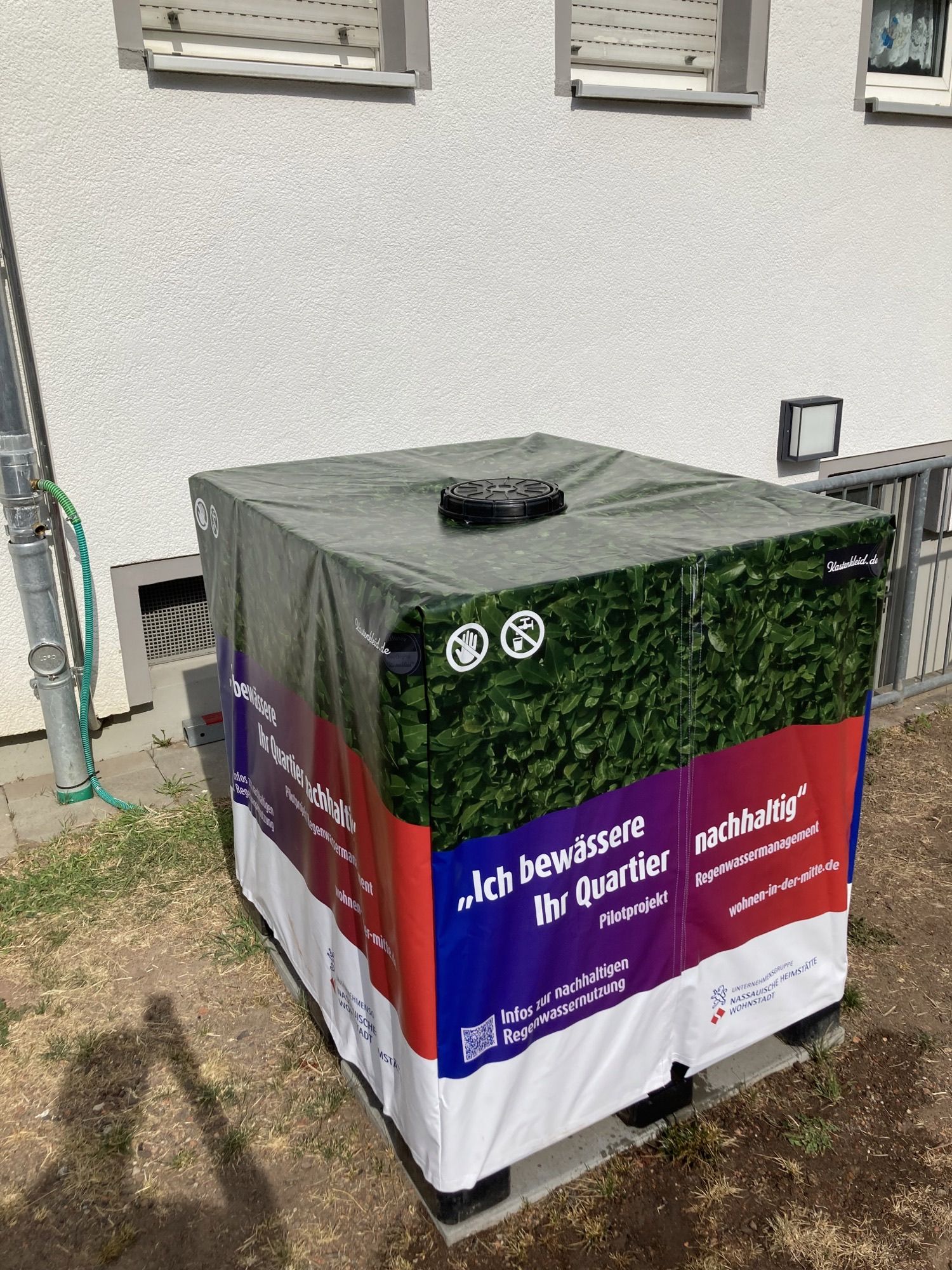 Clever gießen: Die ersten Wassercontainer wurden in der Fritz-Kissel-Siedlung in Frankfurt am Main in Betrieb genommen. Foto: NHW