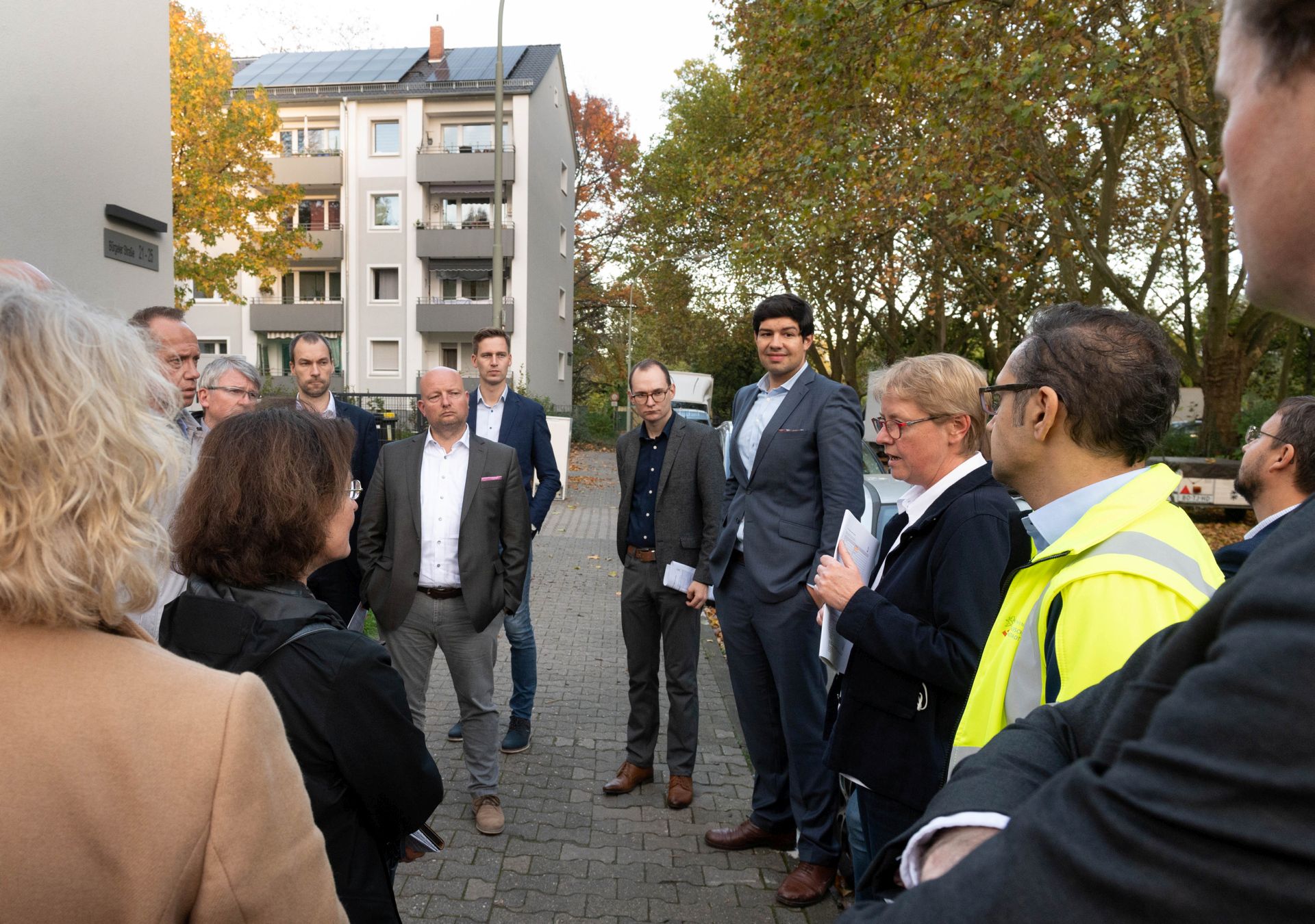 Großes Interesse: Der Fachausschuss Klimaschutz des GdW machte sich vor Ort ein Bild von den Arbeiten in der Bürgeler Straße in Frankfurt-Fechenheim. Foto: NHW / Marc Strohfeldt