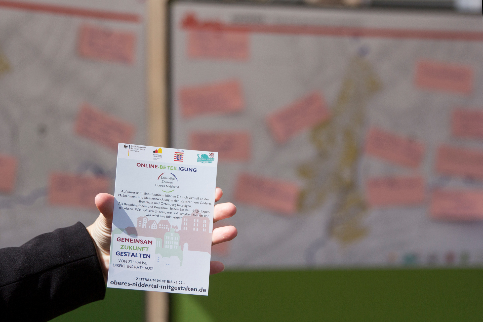 Etwas sportlicher ging es im Oberen Niddertal zu. Im Rahmen des Programms "Lebendige Zentren" nahmen die Nachbargemeinden Ortenberg, Hirzenhain und Gedern am "Tag der Städtebauförderung" teil. Bürgerinnen und Bürger informierten sich über die Entwicklung ihrer Kernbereiche und gingen auf eine abenteuerliche GPS-Vulkan-Rallye. Ziel dieser interaktiven Geo-Caching-Schnitzeljagd: ein Bewusstsein für das Zusammenspiel von städtebaulichen Aspekten, Freizeit, Bewegung und Heimatbildung zu wecken. Die Teilnehmenden aller Altersklassen mussten knifflige Fragen beantworten, spannende Aufgaben bewältigen und erfuhren Geschichten über ihre Heimatorte. Die ProjektStadt | Integrierte Stadtentwicklung hatte gemeinsam mit der Bevölkerung, Politik, Verwaltung und lokalen Partnern ein Integriertes Stadtentwicklungskonzept erarbeitet, das im März 2021 beim Land Hessen als Fördermittelgeber eingereicht wurde. Es fasst zusammen, wie und in welchen Bereichen die Lebensqualität in den drei Kommunen im Wetteraukreis langfristig verbessert werden kann. Die Ergebnisse und städtebaulichen Maßnahmen wurden am Aktionstag vorgestellt und konnten anschließend mit dem Team des Fördergebietsmanagements um Projektleiterin Miriam Kubat diskutiert werden.