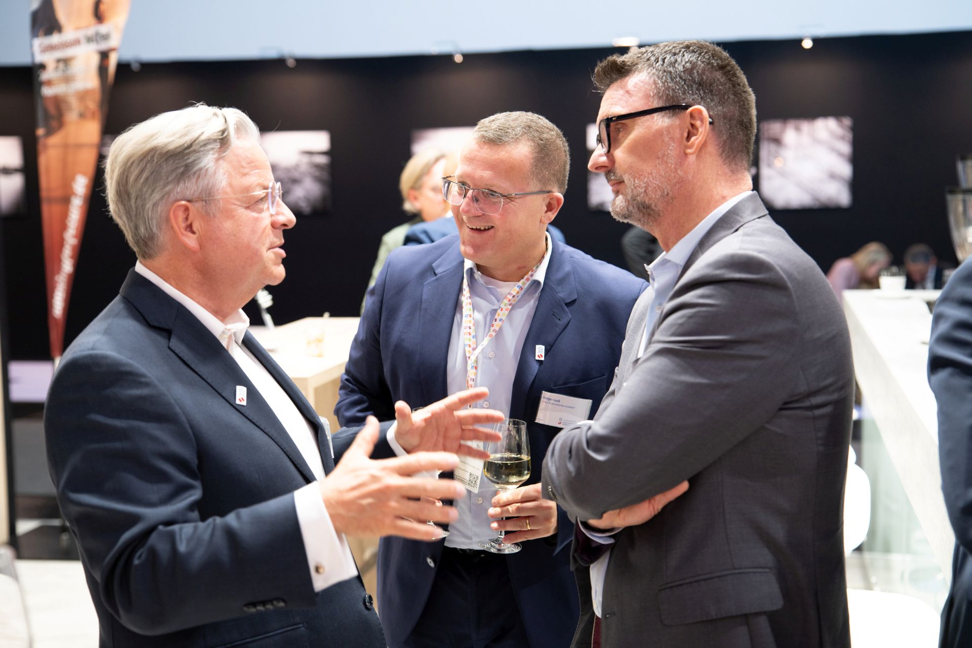 Nach zwei spannenden und informativen Tagen fand zum Ausklang am Messedienstag wieder der traditionelle Hessen-Treff am NHW-Stand statt. Bei leckerem Wein und Spezialitäten durfte munter „gebabbelt“ werden – auch über Nicht-Immobilien-Themen.