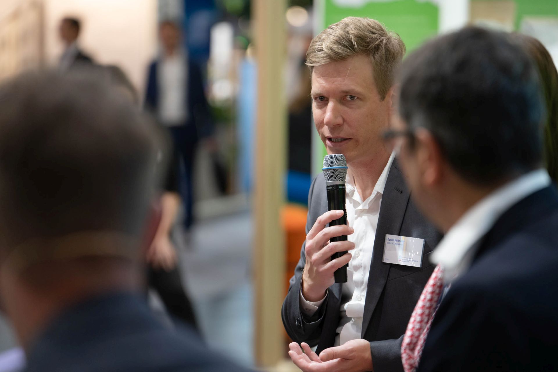 Die Expertise der NHW-Mitarbeitenden war aber nicht nur am eigenen Stand gefragt – auch auf anderen Bühnen waren sie gern gesehene Gäste. So moderierte Sebastian Jung, Leiter des Fachbereichs Digitale Transformation & Innovation, auf der Transform & Beyond Stage der Expo Real die Veranstaltung „Inside Innovation“. Dort stand die Zusammenarbeit von Startups und Unternehmen im Fokus. Die Sustainable Construction Stage – unterstützt von Bau und Expo Real – widmete sich dem dringenden Bedarf an nachhaltigen und effizienten Baumethoden in der sich wandelnden Immobilienlandschaft von heute. In verschiedenen Panels wurde über alternative Baumaterialien, Lösungen für Klimaneutralität und transformative Technologien wie Digitalisierung, KI, Vorfertigung und Automatisierung diskutiert. Für die NHW auf der Bühne: Helge Bitzer, Leiter des Unternehmensbereichs Neubau. Und last but not least sprach Dennis Hofmann, Leiter des NHW-Servicecenters Darmstadt, mit weiteren Experten am DGNB-Stand über Herausforderungen und Chancen nachhaltiger Quartiere. Was sind die Schlüssel auf dem Weg zum nachhaltigen Quartier und wo liegen die Grenzen? Die Gesprächsrunde lieferte Beispiele aus der Praxis und thematisierte wesentliche Veränderungen der vergangenen und kommenden Jahre.
