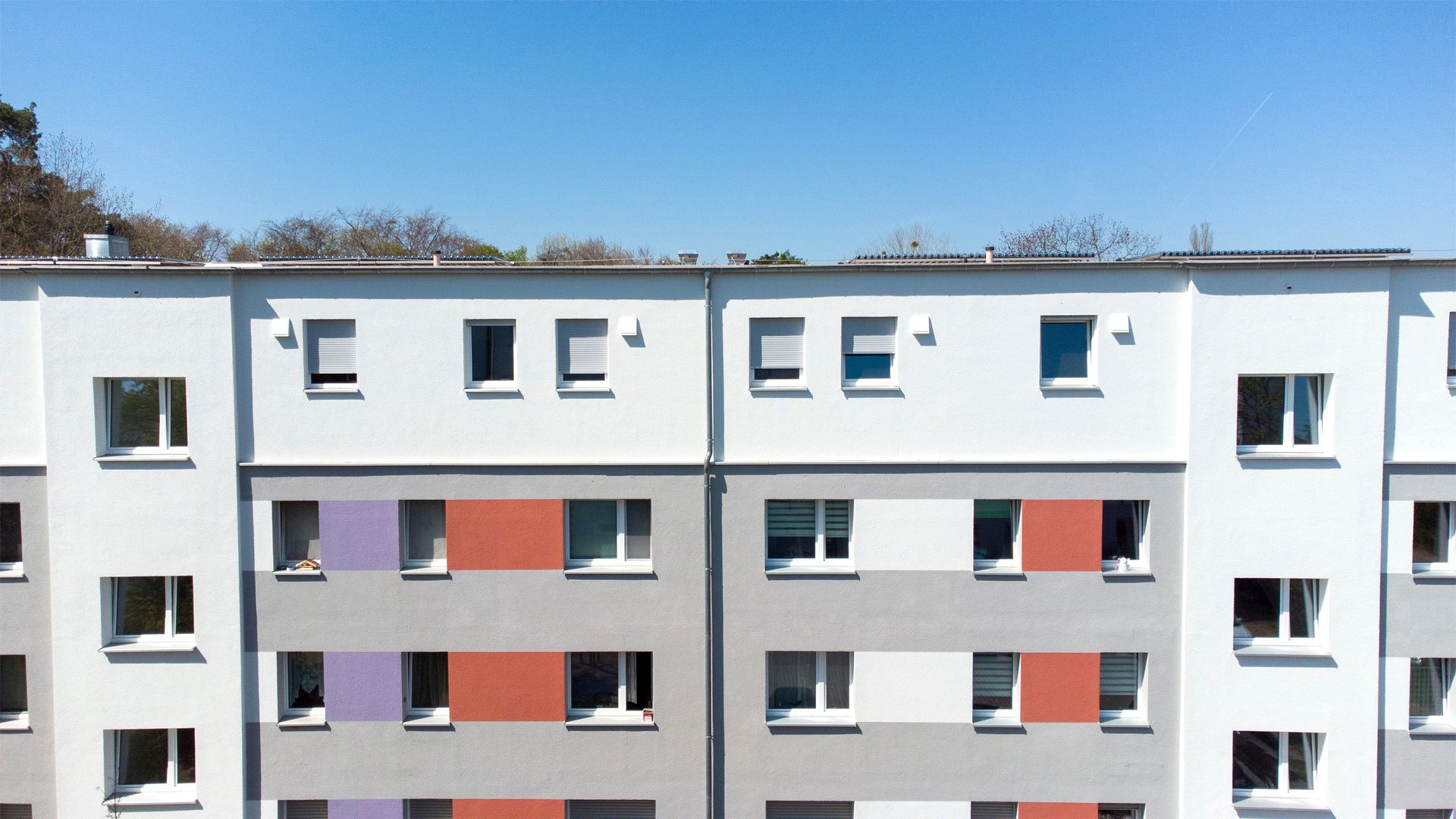 Nach neun Monaten hat eine unserer Siedlungen Zuwachs bekommen. Alle 14 Gebäude der Fritz-Kissel-Siedlung im Frankfurter Stadtteil Sachsenhausen wurden um jeweils ein bis zwei Stockwerke erweitert. Das bedeutet: Wir konnten mehr Wohnraum schaffen, ohne zusätzliche Flächenversiegelung zu verursachen – insgesamt 82 Wohneinheiten. Der vertikale Bau wird angesichts des ständigen Zuzugs vor allem in den Großstädten immer wichtiger.