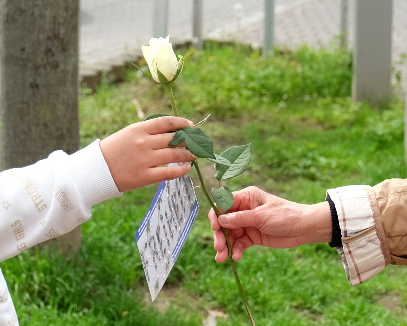 Am 9. Mai 2021 wäre Sophie Scholl 100 Jahre alt geworden. Die junge Studentin war Teil der Widerstandsbewegung Weiße Rose, welche die Bevölkerung über die grausamen Verbrechen der nationalsozialistischen Diktatur aufklärte. Seit Scholls Hinrichtung gilt die weiße Rose als Symbol für Courage und Widerstand gegen Rechtsextremismus. Anlässlich ihres 100. Geburtstags haben sich die NHW und das Volksbildungswerk Klarenthal eine besondere Aktion überlegt: 100 weiße Rosen haben Kinder an die Bewohner:innen der Altenwohnanlagen in Klarenthal verteilt.