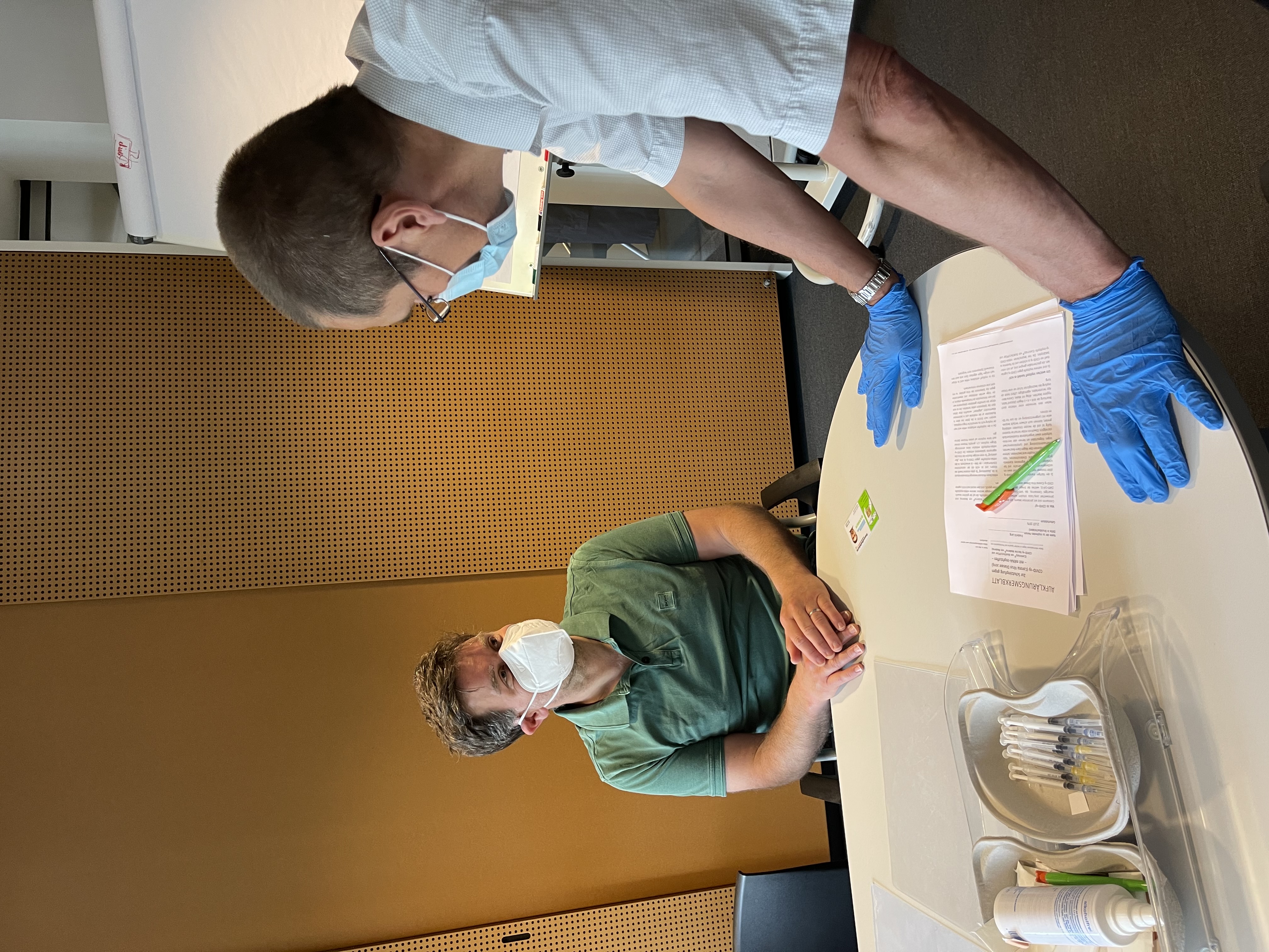 Um unsere Mitarbeiter zu schützen und einen Teil zur Bekämpfung der Pandemie beizutragen, hat unser Betriebsarzt Dr. Björn Müller am 12. Juni eine Corona-Impfaktion ins Leben gerufen. 132 Personen holten sich an diesem Tag den Piks in den Oberarm ab. Auch der Kollege im Norden, Dr. Christoph Brückner, hat am 18. Juni mit der Impfung von Mitarbeiter:innen begonnen. Das Wiedersehen in der Warteschlange war für viele die erste Begegnung mit Kolleginnen und Kollegen seit Beginn der Pandemie.