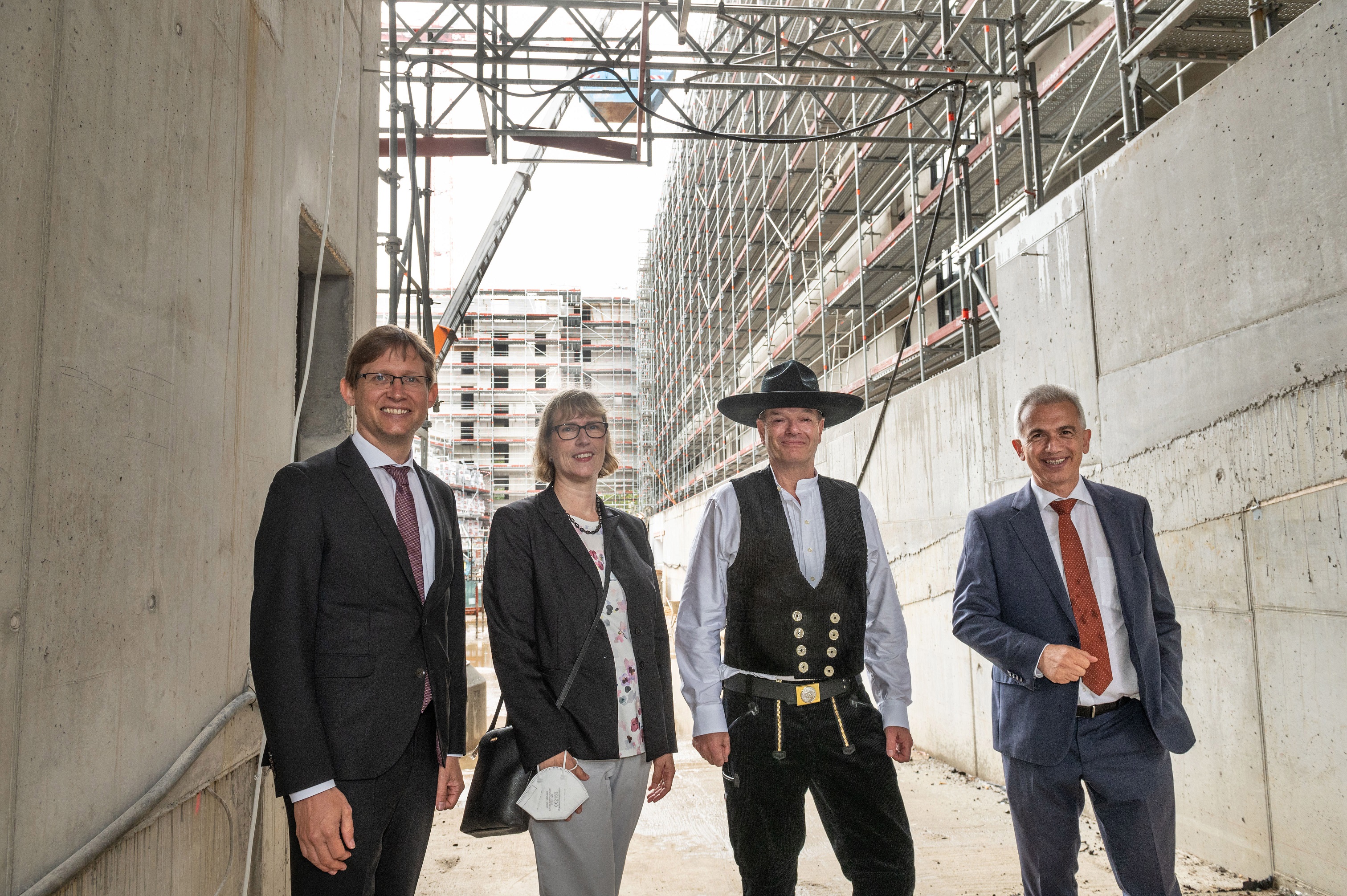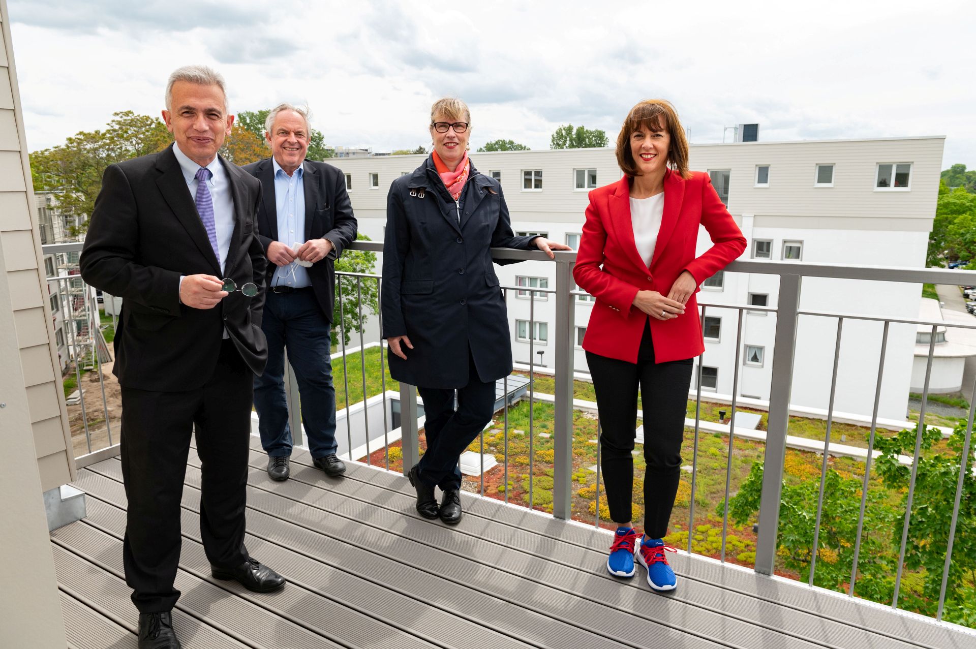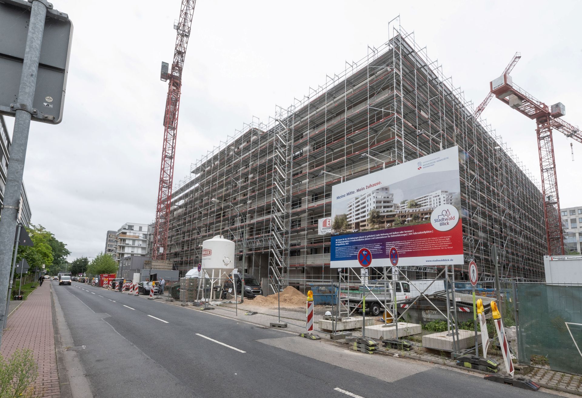 …entsteht heute eines der größten Wohnungsbauprojekte Frankfurts der letzten Jahre. Auch die NHW ist mit dem "Stadtwaldblick" an der Umwandlung der ehemaligen Bürostadt beteiligt. Die Fertigstellung des Rohbaus haben im August Geschäftsführerin Monika Fontaine-Kretschmer, Frankfurts OB Peter Feldmann sowie der hessische Staatssekretär für Wohnen Jens Deutschendorf und die am Bau Beteiligten mit einem Richtfest gefeiert. Mit dem "StadtwaldBlick" entstehen 203 Wohnungen im Lyoner Quartier, 30 Prozent davon gefördert. Ab 2023 sollen die ersten Bewohner:innen einziehen.