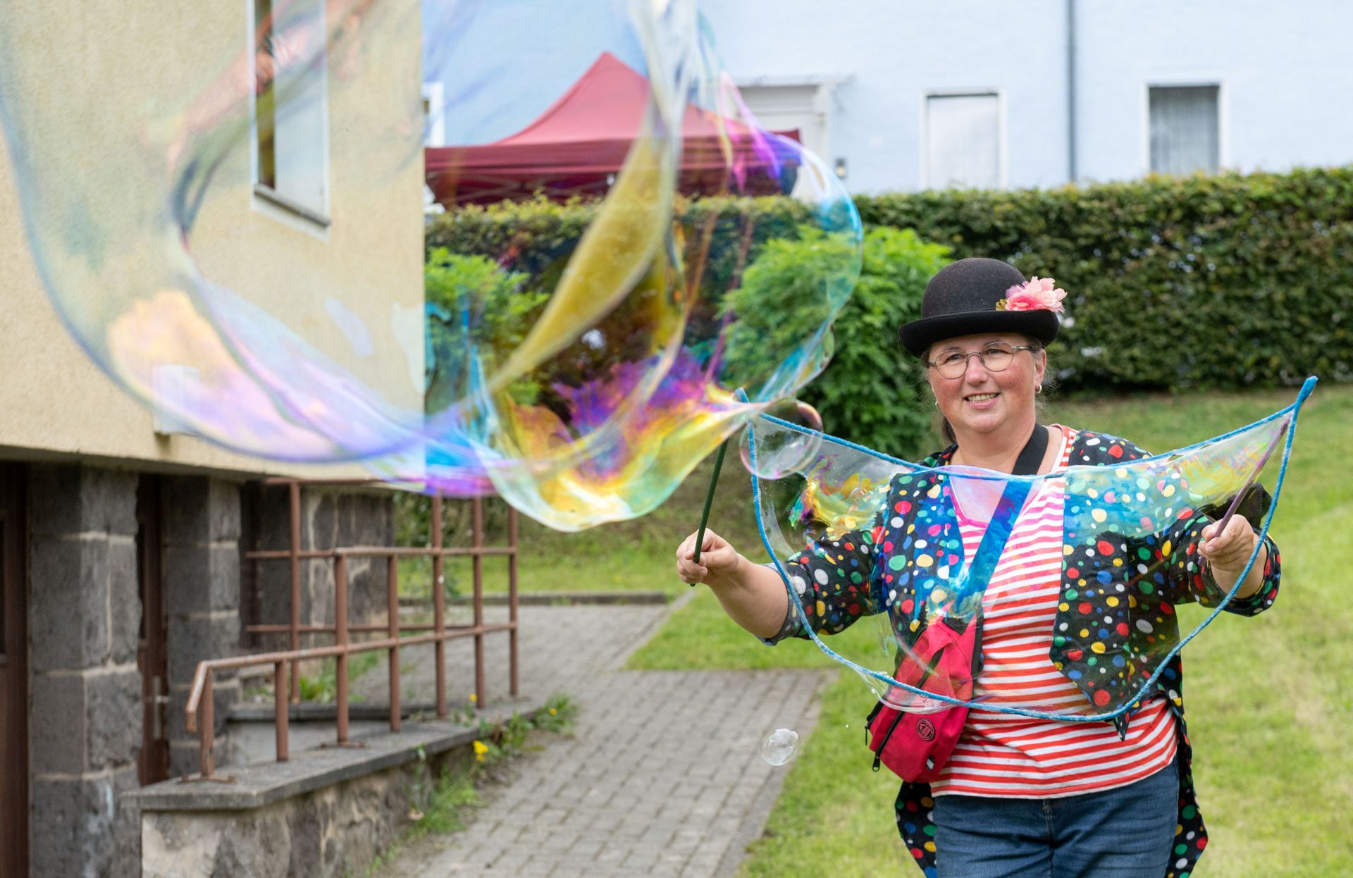 Unsere Mieter:innen sollen sich nicht nur ein schönes Zuhause leisten können, sondern sich dort auch so wohl wie möglich fühlen. Darum ist es uns wichtig, die Gemeinschaft und das Nachbarschaftsgefühl zu fördern. Während der Corona-Pandemie ist das leider etwas schwierig geworden, doch diesen Monat hatten die Bewohner:innen unseres Quartiers in Lollar Glück. Bei schönem Wetter haben sie draußen ein Quartiersfest gefeiert. Für die Verpflegung ist das NHW-Machbarschaftsmobil ausgerückt. Das Highlight für die Jüngsten war eine Hüpfburg. Das Quartier in Lollar ist Teil der 1000 ehemaligen Buderus-Wohnungen, die wir vor zwei Jahren erworben haben.