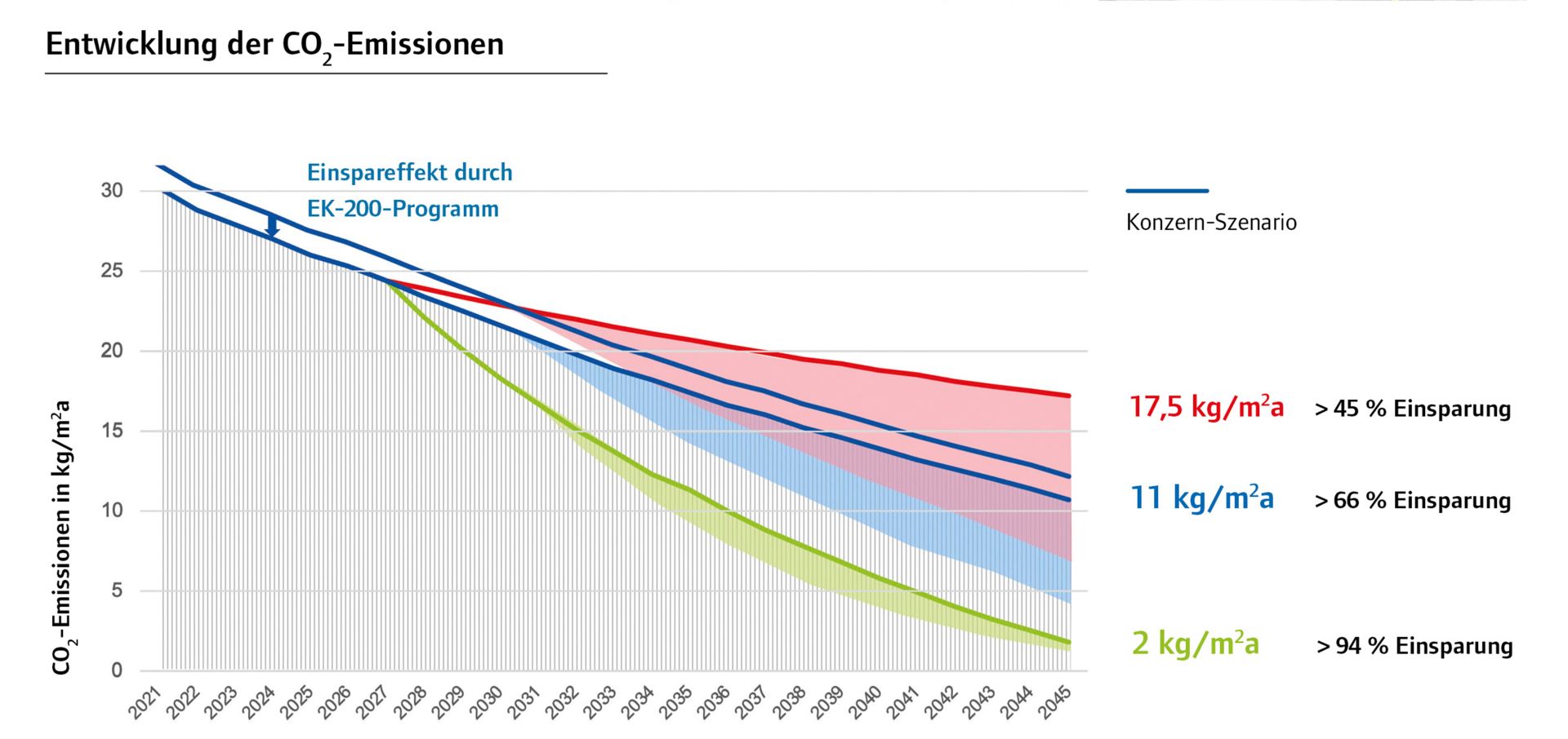Entwicklung der CO2-Emissionen von 2021-2045.