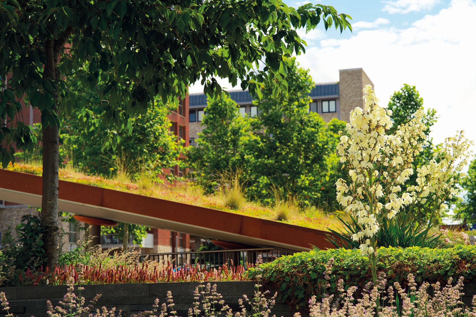 In Sachen Klimaresilienz schlummert aber auch im städtischen Immobilienbestand und in kommunalen Gebäuden großes Potenzial. Baulich spielt hier die energetische Sanierung eine entscheidende Rolle, ergänzt durch eine sinnvolle Begrünung der Dächer, Fassaden und Innenhöfe. Themen wie Beschattung und Entsiegelung entfalten auch hier ihre Wirkung, ebenso die richtige Auswahl an klimaresilienten Pflanzen sowie der kluge Einsatz von Regenwasser. Dieser Effekt lässt sich durch entsprechende Anreizprogramme um ein Vielfaches erhöhen. Sie richten sich beispielsweise an Privateigentümer, die bei einer Sanierung oder beim Umbau ihrer Immobilie finanzielle Mittel aus öffentlichen Fördertöpfen in Anspruch nehmen können. Nicht zuletzt gilt es aber auch, die Bürgerinnen und Bürger mit ins Boot zu holen und sie für eine nachhaltige und umweltbewusste Lebensweise in allen Bereichen zu sensibilisieren.