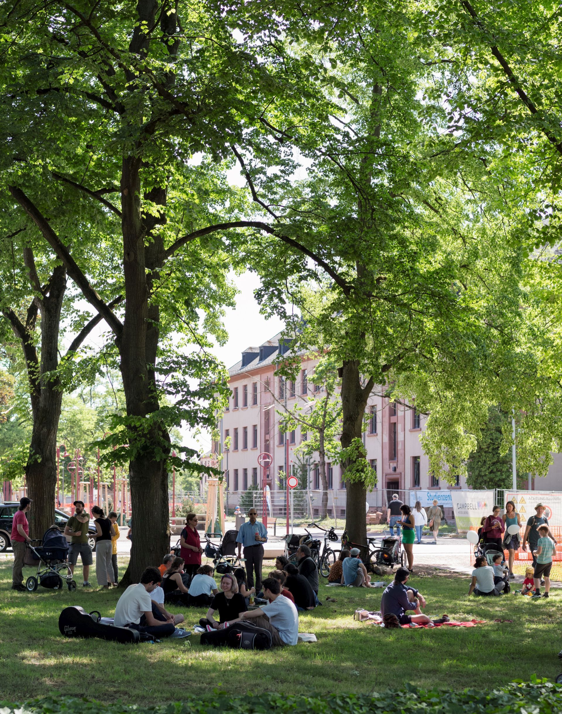 Bereits weit fortgeschritten ist die Entwicklung auf dem Konversionsgebiet der ehemaligen Campbell Barracks. Nach zwei Jahren Bauzeit wurde dort im Mai 2022 der ANDERE PARK offiziell eröffnet. Westlich und östlich der Römerstraße gelegen, vereint er großzügige Grün-, Spiel- und Erholungsflächen, ruhige Oasen und belebte Plätze. „Alle Bestandteile versprechen ein lebendiges Quartier, das die neue Südstadt prägen wird“, erklärte Oberbürgermeister Eckart Würzner anlässlich der Eröffnung. Zudem verbindet die Anlage verschiedene Orte des Wissens im Areal – dazu zählen das Kulturhaus Karlstorbahnhof, ein Kreativwirtschaftszentrum, das Mark Twain Center für transatlantische Beziehungen sowie das neue Bürgerzentrum in der Chapel. Mit dem Park im Herzen der Südstadt ist ein Begegnungsort für alle Generationen entstanden, der Neues verbindet und dabei die Erinnerung an die Geschichte bewahrt. Ehemals militärisch genutzte Flächen so zu entwickeln, dass die Historie des Ortes nicht verloren geht und der öffentliche Raum gleichzeitig zu einem identitätsstiftenden Quartiersmerkmal wird, ist eine höchst anspruchsvolle Aufgabe. Dieser sind die Stadt und die Internationale Bauausstellung IBA Heidelberg mit Unterstützung der ProjektStadt | Stadtentwicklung Süd mehr als gerecht geworden. Bereits seit 2012 sind die Frankfurter Experten mit im Boot. Sie steuerten den städtebaulichen Prozess vor Ort und betreuten das Planungsverfahren sowie dessen Umsetzung. Zudem führten sie diverse Beteiligungsformate mit durch – darunter Gremiensitzungen, öffentliche Bürgerforen, Führungen und eine intensive Jugendbeteiligung. Schließlich lieferten die Bürgerinnen und Bürger wertvolle Hinweise im Umgang mit dem Terrain und wurden von Beginn an eng in den Prozess mit eingebunden.