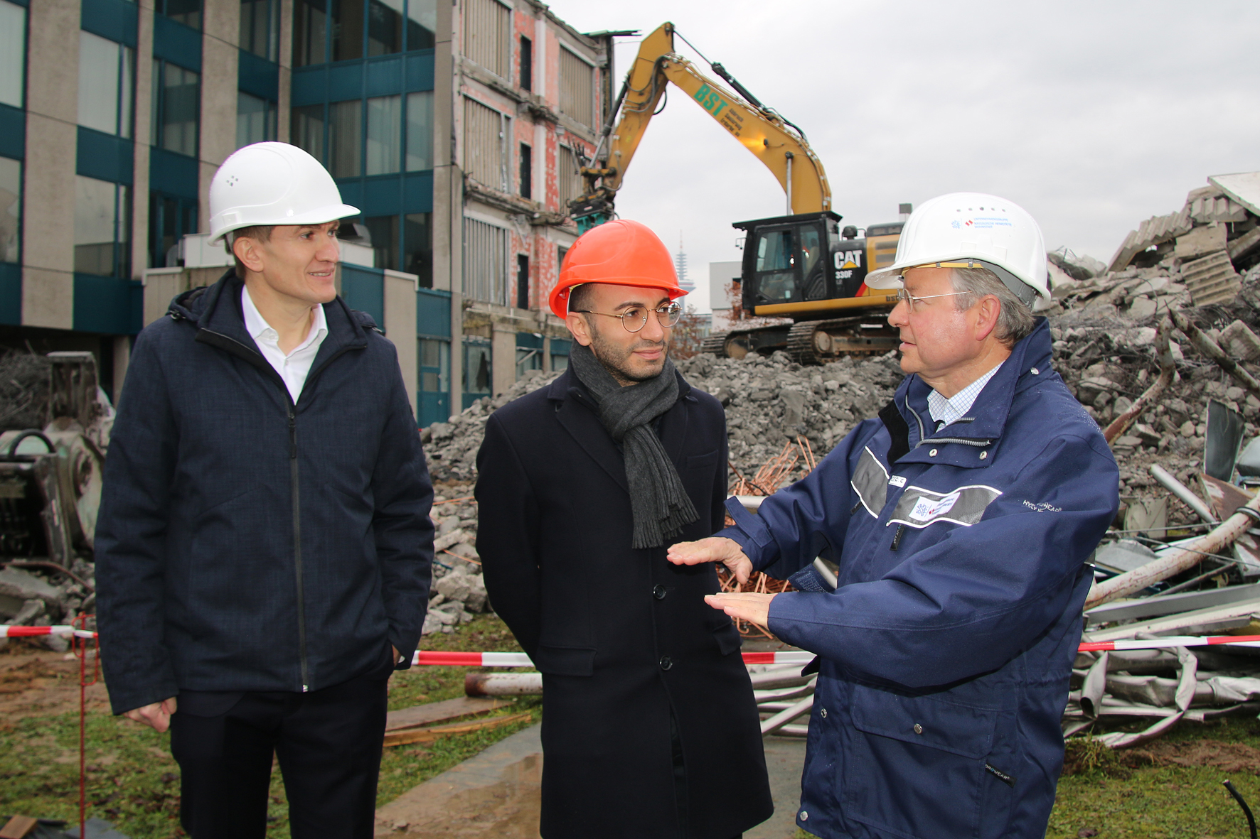 Mit ihm vor Ort waren seine Geschäftsführungskollegen Monika Fontaine-Kretschmer und Dr. Constantin Westphal sowie Wirtschaftsminister Tarek Al-Wazir, Frankfurts Planungsdezernent Mike Josef und Ralf Werner, Geschäftsführer der Instone Real Estate. Al-Wazir stufte das Neubauprojekt in seiner Ansprache als vorbildlich ein: „Mehr Wohnfläche, mehr Energieeffizienz, klimafreundliche Mobilität, mehrere Kitas, eine sehr gute soziale Infrastruktur in einer ansprechenden Lage – die NHW und Instone belegen mit diesem Vorhaben, wie man die großen Herausforderungen des Wohnens im Ballungsraum annimmt.“
