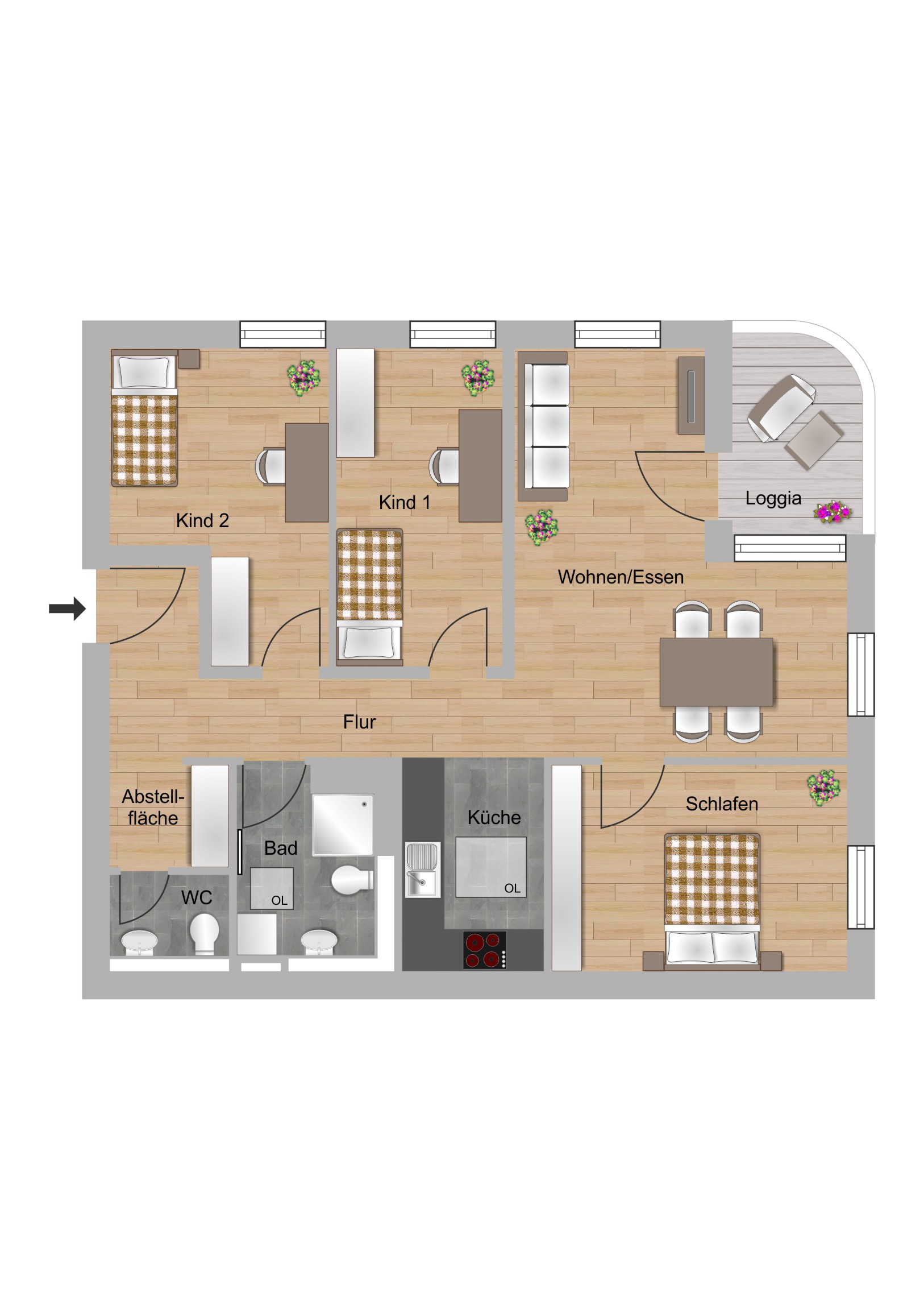 Wir bieten Ihnen insgesamt 39 Mietwohnungen an. Davon sind 8 Wohnungen barrierefrei und 15 geförderte Wohnungen (7 Wohnungen nach dem Förderweg 1 und 8 Wohnungen nach dem Förderweg 2/Mittelstandsprogramm).
