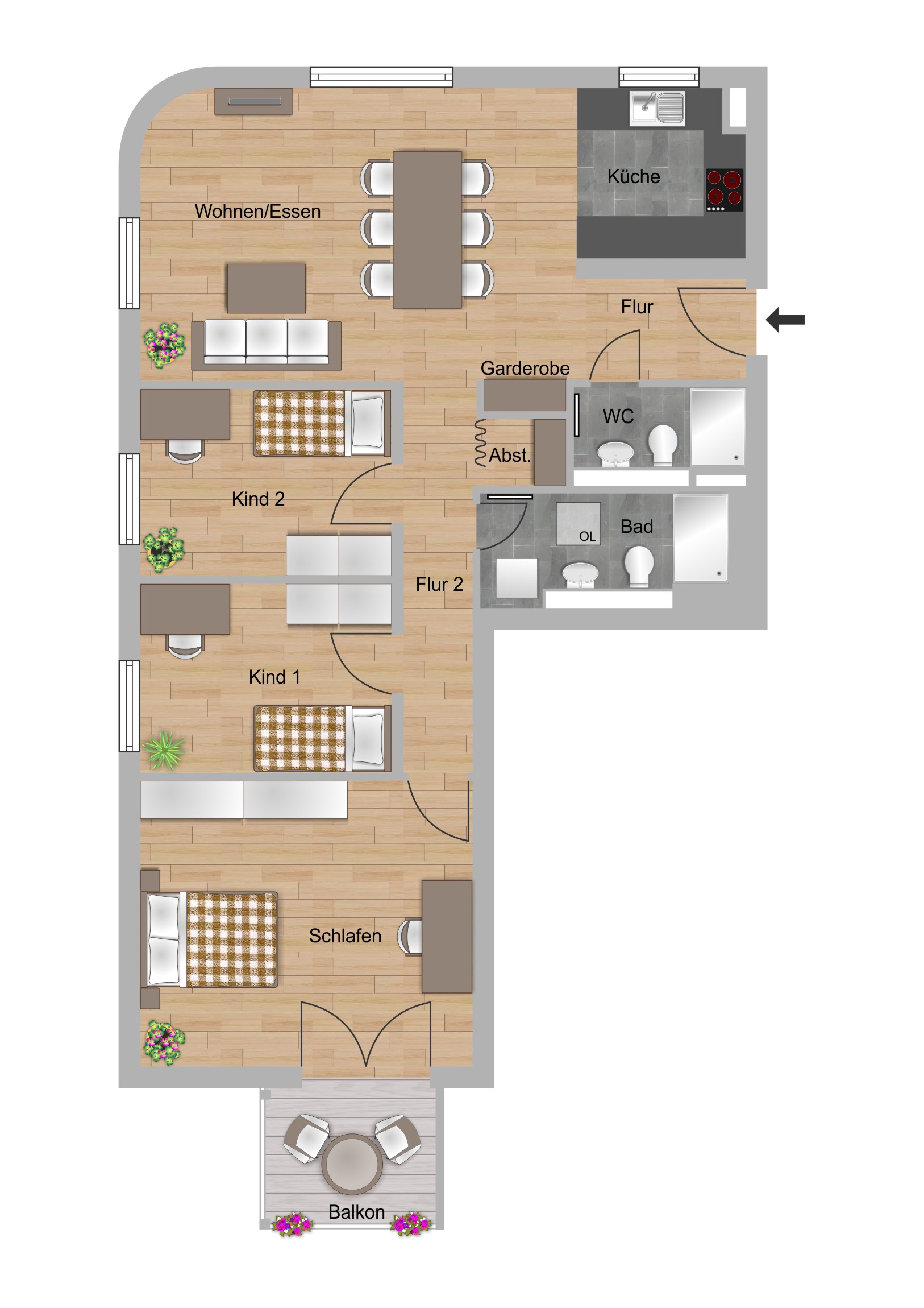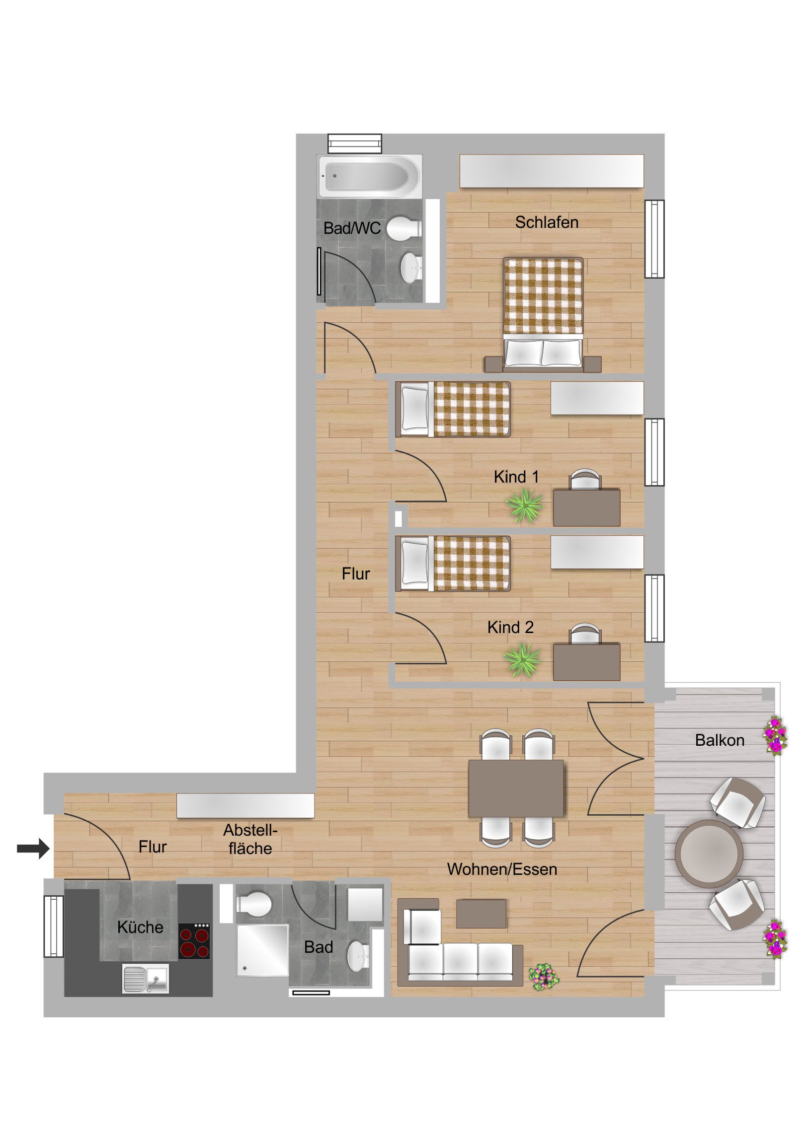 Freuen Sie sich auf helle und großzügig geschnittene 2 – 4 Zimmer-Wohnungen. Jede Wohnung verfügt über einen Balkon, die Wohnungen im Erdgeschoss über einen Mietergarten und die Wohnungen im Dachgeschoss über eine Dachterrasse. Die Wohnungen variieren von 53,50 m² bis 113,50 m² und bieten Singles, Familien und Paaren die Möglichkeit, wohnen und arbeiten miteinander zu kombinieren.