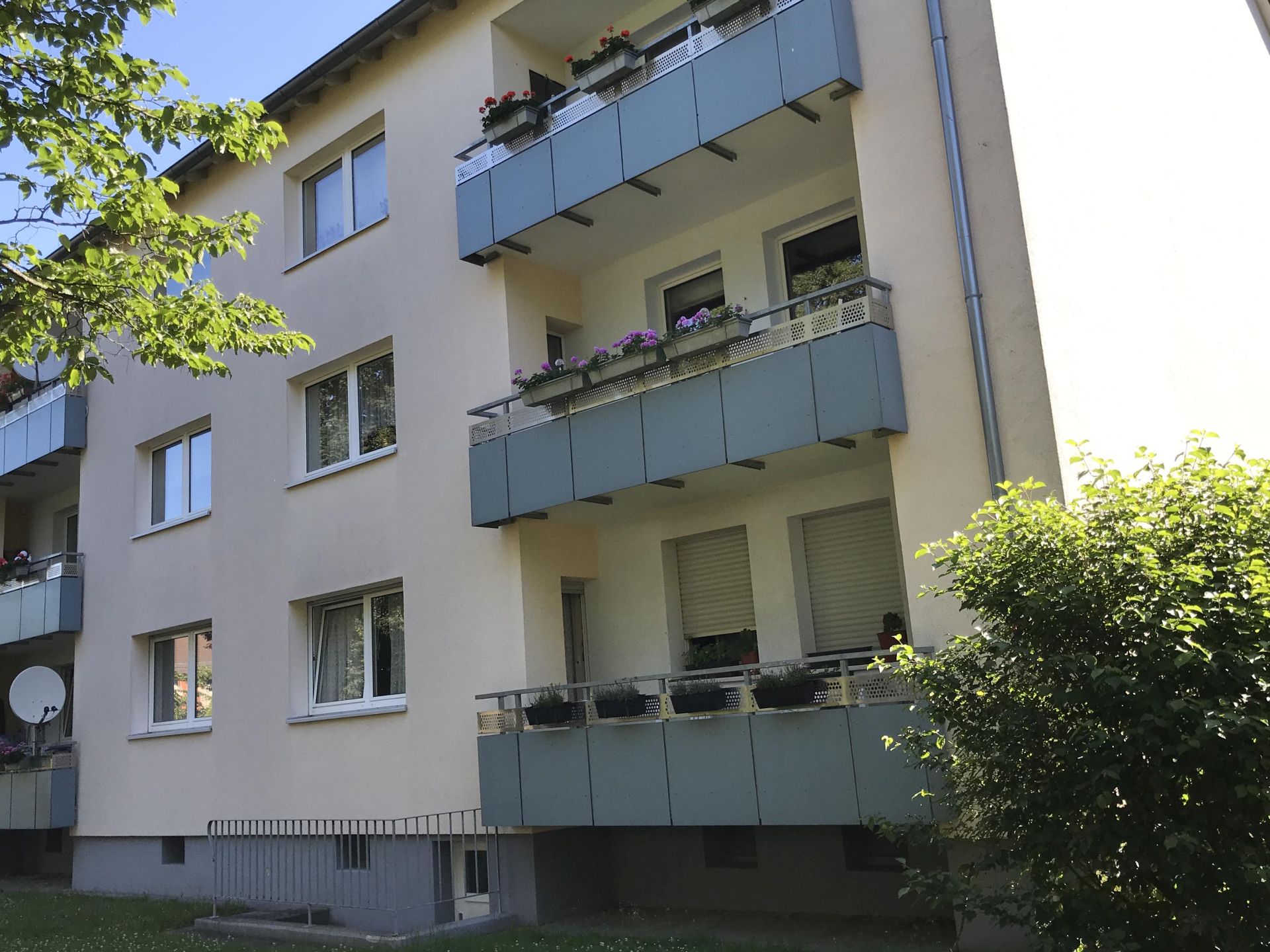 Fast alle Wohnungen haben einen Balkon. Zu jeder Mietwohnung gehört ein Kellerraum. Für einige Wohnungen ist ein Wohnberechtigungsschein erforderlich.