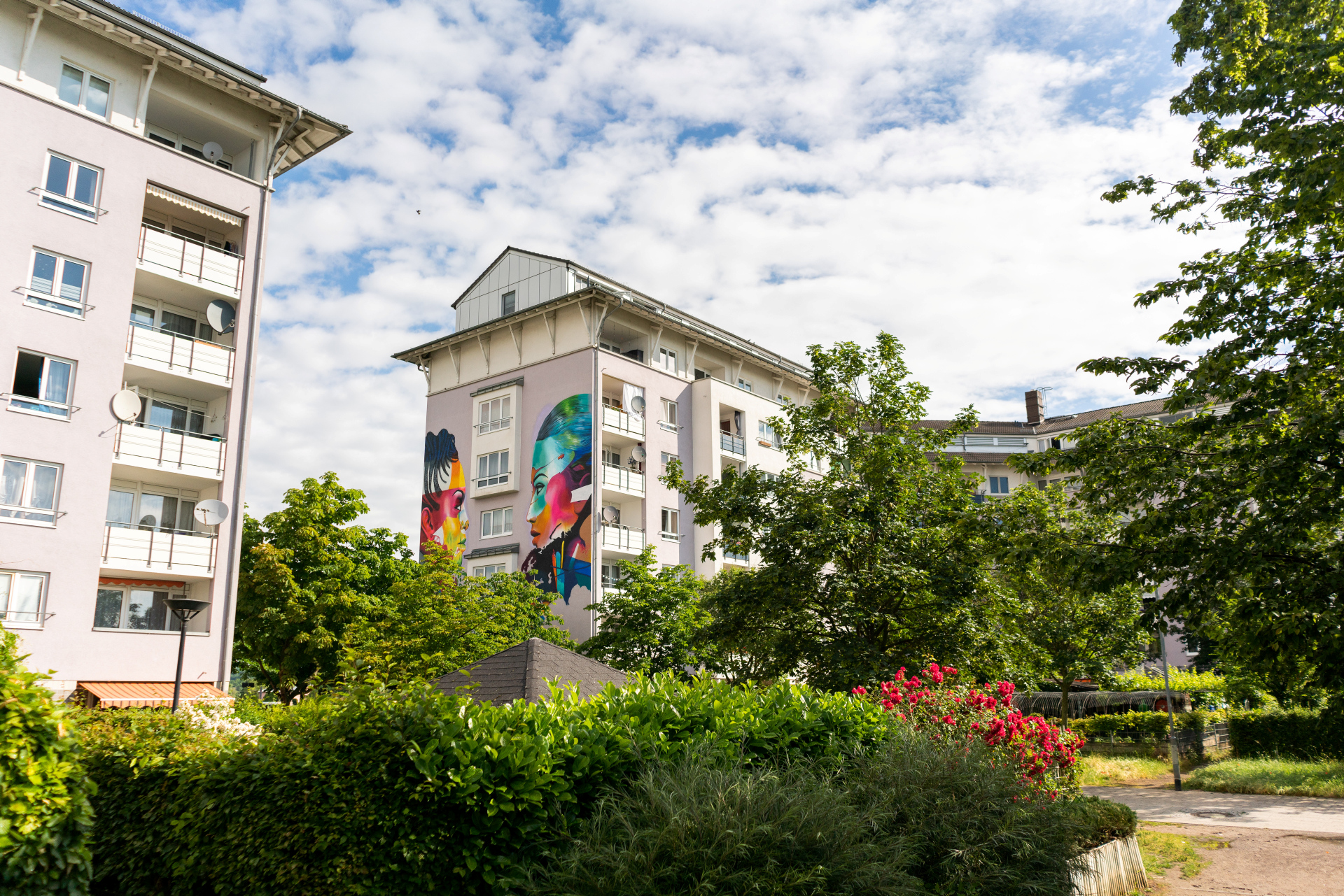 Die AntoniaGärten in Wiesbaden-Erbenheim sind ein echter Wohlfühlort. Hier gibt es 174 neue Mietwohnungen, die besonders für Haushalte mit kleinen und mittleren Einkommen geeignet sind. Außerdem gibt es Gewerbeflächen und Tiefgaragen.