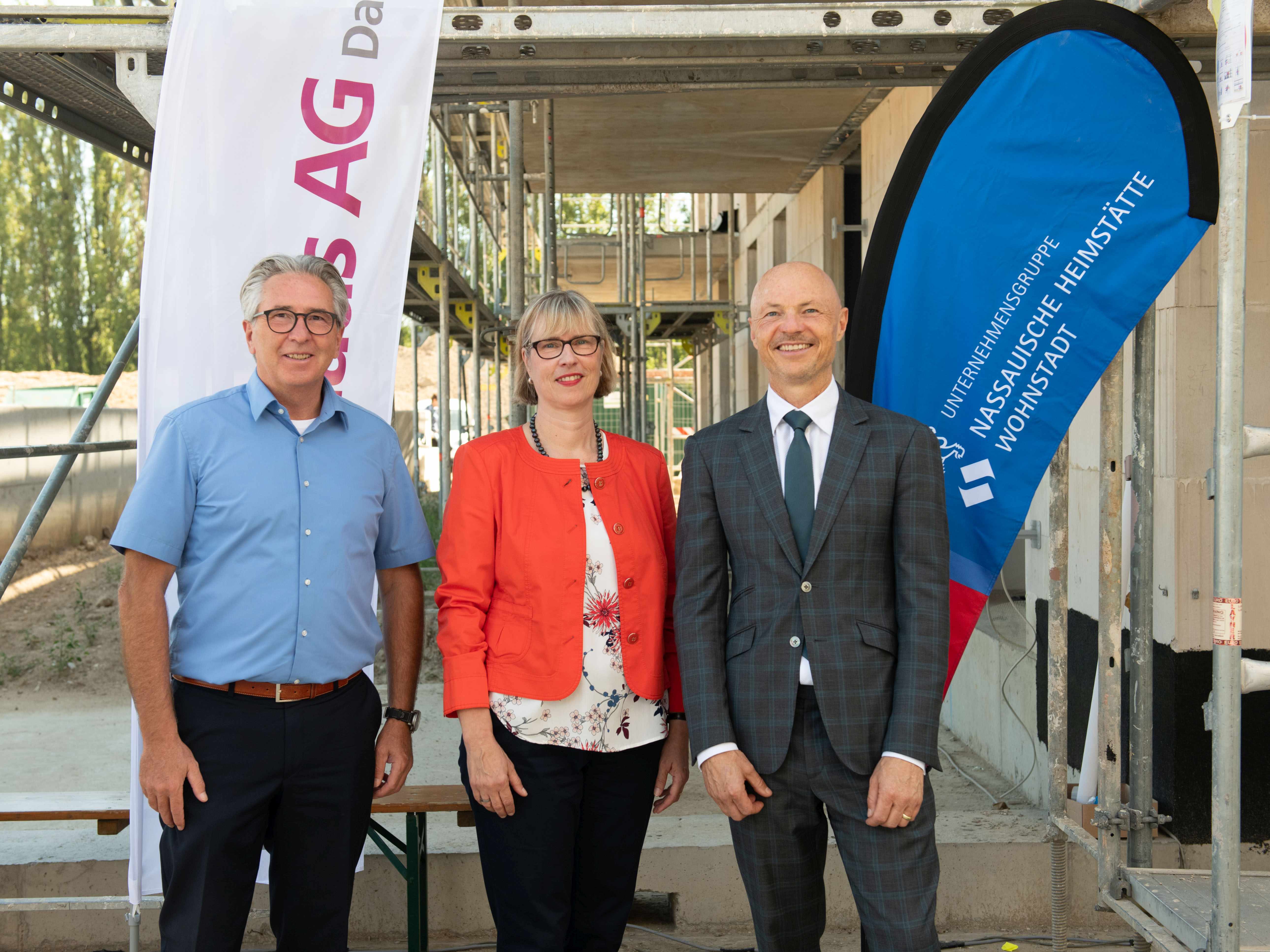 Die Traumhaus AG aus Wiesbaden und die Unternehmensgruppe Nassauische Heimstätte | Wohnstadt (NHW) feierten zusammen das Richtfest für den zweiten und dritten Bauabschnitt der Antonia Gärten in Wiesbaden-Erbenheim. Die Traumhaus AG baut für die NHW im Stadtteil Erbenheim insgesamt 174 bezahlbare und schlüsselfertige Mietwohnungen – 64 davon gefördert – mit 12.600 qm Wohnfläche und sieben Gewerbeeinheiten. Der Bau der ersten 70 Wohnungen, die in der Egerstraße entstanden sind, ist abgeschlossen. Das Richtfest für den zweiten und dritten Bauabschnitt fand mit Gästen auf der Baustelle statt. Anwesend waren neben dem Vorstandsvorsitzenden der Traumhaus AG, Otfried Sinner, Dr. Philipp Nimmermann, Staatssekretär im hessischen Ministerium für Wirtschaft, Energie, Verkehr und Wohnen und Monika Fontaine Kretschmer, Geschäftsführerin Unternehmensgruppe Nassauische Heimstätte | Wohnstadt.