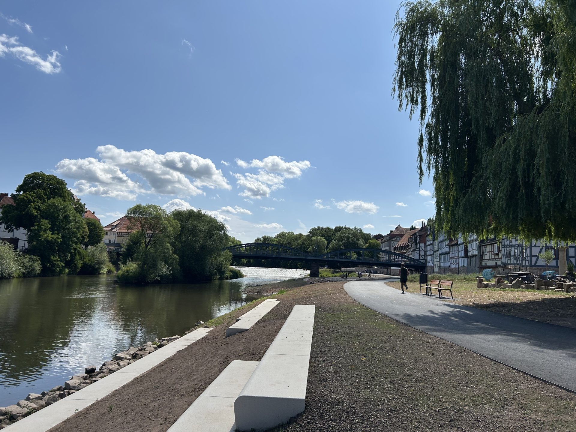 Rotenburg an der Fulda – Nach knapp zwei Jahren Bauzeit wurde das neu gestaltete Südufer der Fulda in Rotenburg an der Fulda feierlich eingeweiht. Inmitten der dicht bebauten Altstadt ist ein Erlebnisraum entstanden, der ästhetisch überzeugt, den Hochwasserschutz verbessert und einen qualitätvollen, öffentlichen Aufenthaltsraum direkt am Fuldaufer bietet. Maßgeblichen Anteil hatte die ProjektStadt.