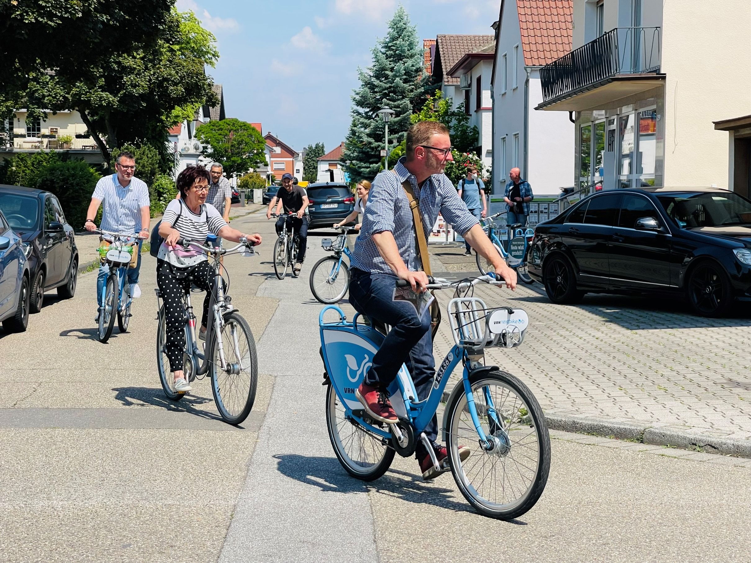 Bürstadt – Einer Radfahrtruppe ganz besonderer Art konnte man kürzlich in der östlichen Kernstadt begegnen. Bürstadt bekam nämlich Besuch von Vertreter:innen des „Zentrums Sozialer Zusammenhalt“, die per Fahrrad mit Bürgermeisterin Barbara Schader und weiteren Mitradlern das Quartier der östlichen Kernstadt erkundeten. Das Zentrum fungiert für das Land Hessen als Koordinationsstelle im gleichnamigen Förderprogramm „Sozialer Zusammenhalt“, in welches der Stadtteil „Östliche Kernstadt“ von Bürstadt aufgenommen wurde. Die ProjektStadt ist ein langjähriger strategischer Partner und unterstützt die Kommune bei der Umsetzung zahlreicher Projekte aus unterschiedlichen Förderprogrammen von Bund und Land. Im Rahmen des Programms „Sozialer Zusammenhalt“ koordiniert die ProjektStadt den Gesamtprozess sowie die Umsetzung der im Integrierten Städtebaulichen Entwicklungskonzept (welches ebenfalls von der Projektstadt erstellt wurde) definierten Maßnahmen.