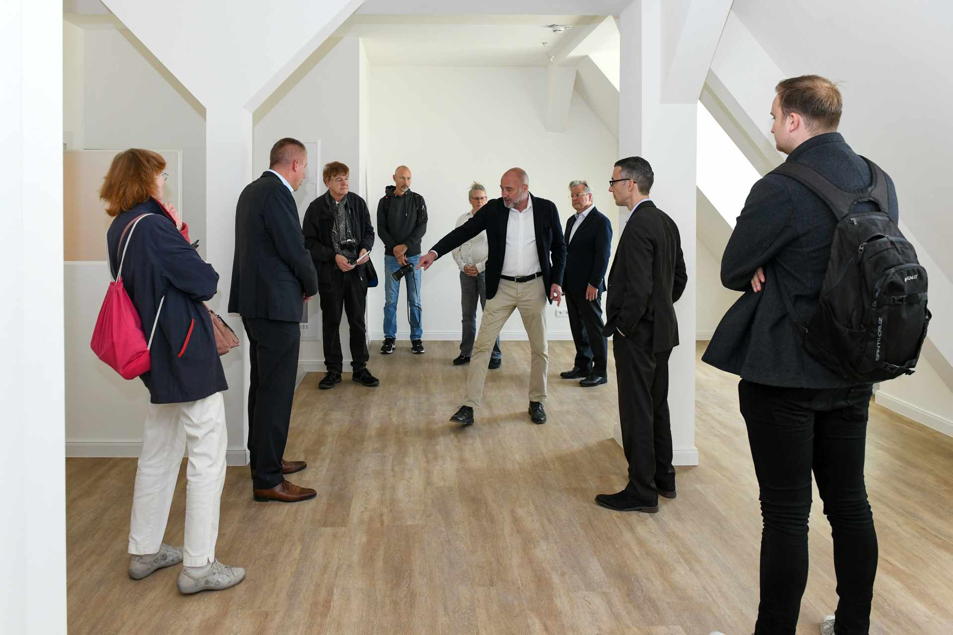Unternehmensgruppe Nassauische Heimstätte | Wohnstadt schafft 48 individuelle Wohnungen im ehemaligen Wiesbadener Gerichtsviertel: Ein richtungsweisendes Projekt, das über die Grenzen der Landeshauptstadt hinaus für Aufmerksamkeit sorgen wird. / Einweihung mit den beiden Staatssekretären Jens Deutschendorf und Dr. Martin J. Worms