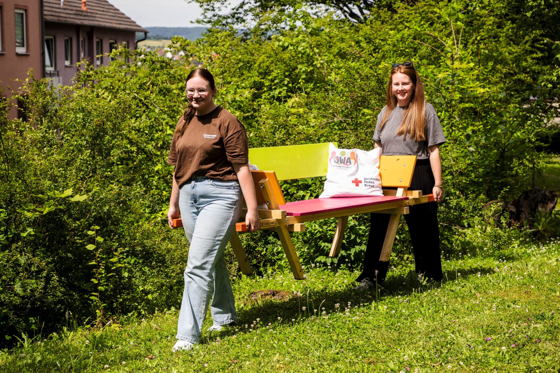 Hünfeld – Warum heißt die Draag-Bank Draag-Bank? Ganz einfach: Weil sie eine Bank zum Hin- und Hertragen ist. Der Name stammt – weil der Designer, der sie entwickelt hat, dort lebt – aus den Niederlanden. Eine dieser Bänke hat jetzt ihren Platz in einem Quartier der Unternehmensgruppe Nassauische Heimstätte | Wohnstadt (NHW) gefunden – im Tiergartenviertel in Hünfeld. Die NHW und das Projekt Gemeinwesenarbeit (GWA) des DRK-Kreisverbands Hünfeld haben gemeinsam mit Bewohnern das Konzept von Designer Robin Weidner umgesetzt und dafür gesorgt, dass die Bank aus dem Viertel nicht mehr wegzudenken ist.