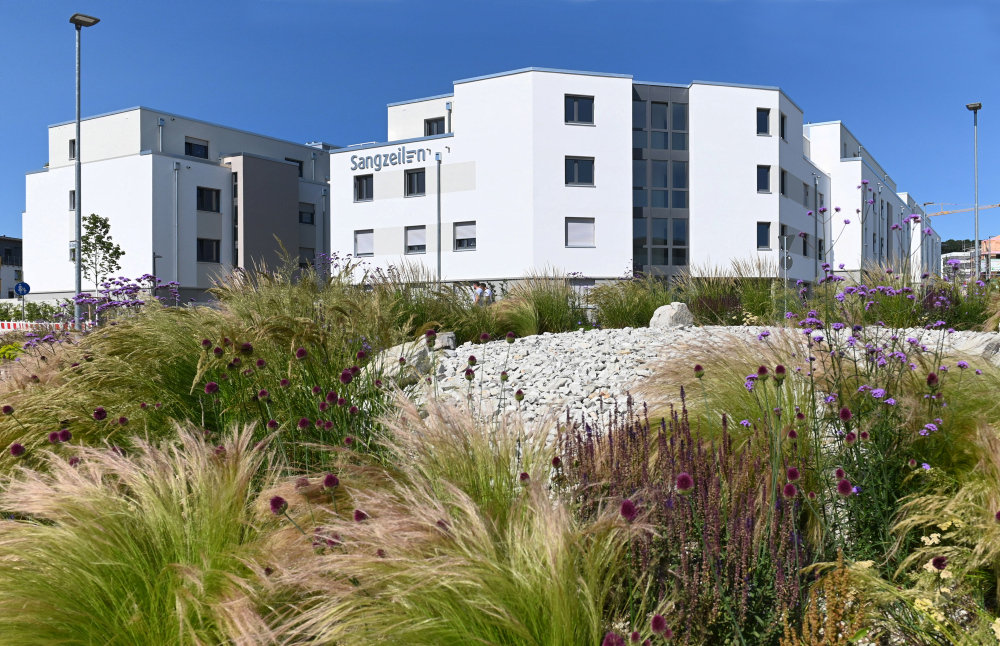 Die „Sangzeilen“ wurden auf dem 6.550 Quadratmeter großen Baugrundstück am neuen Kreisverkehr zwischen Jahnstraße und der Straße Die Sang im Ortsteil Ober-Rosbach gebaut. Die Wohnungen verfügen über eine gute Anbindung an eine funktionierende Infrastruktur: Kindergärten, Spielplätze, Schulen und Einkaufsmöglichkeiten liegen nur wenige Minuten entfernt.