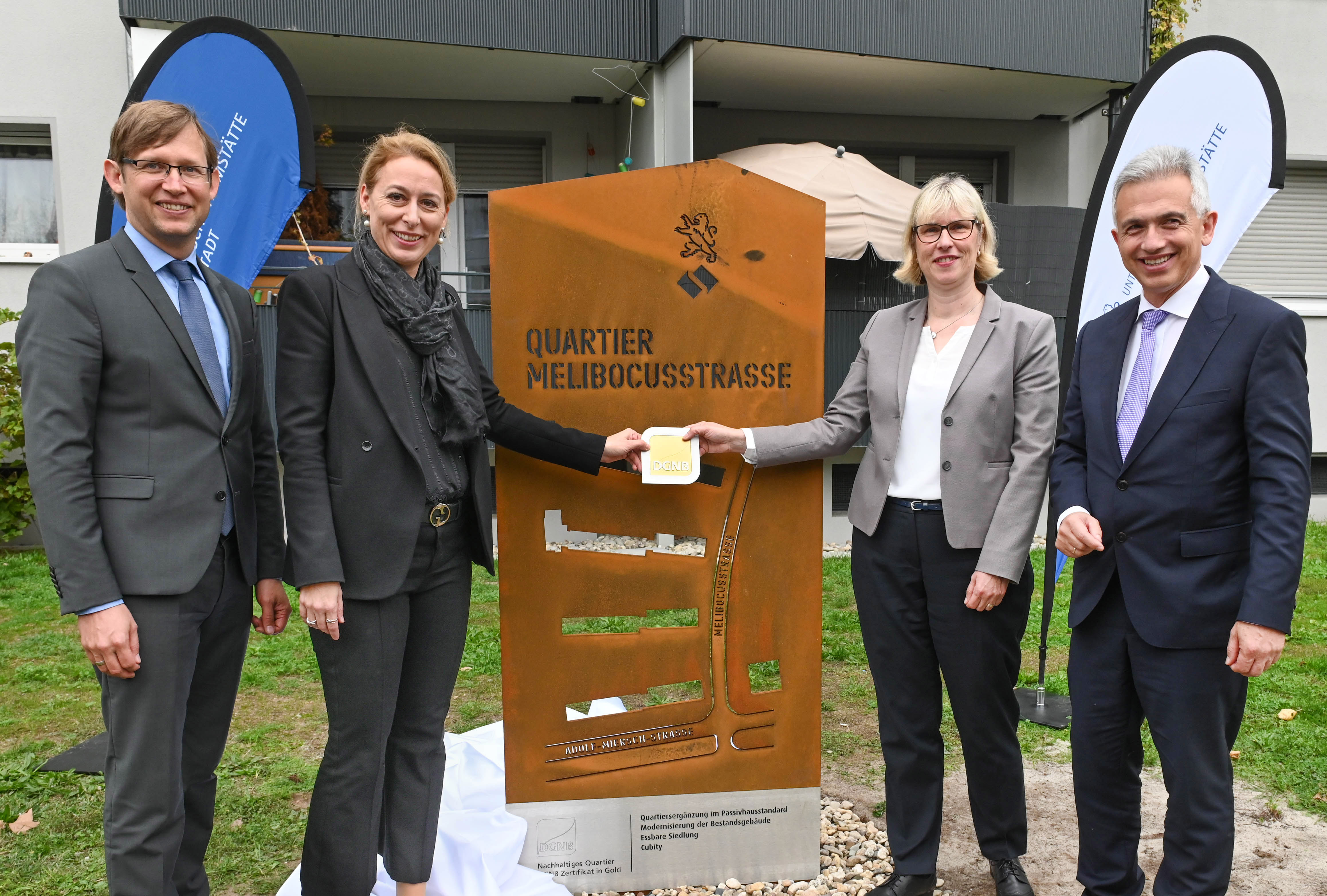 Frankfurt am Main – Wie man aus einer schlichten Nachkriegssiedlung ein klimafreundliches Vorreiterprojekt macht, zeigt die Adolf-Miersch-Siedlung in Frankfurt-Niederrad. Seit 2015 hat die Nassauische Heimstätte in der Adolf-Miersch-Straße und der Melibocusstraße 180 Wohneinheiten modernisiert und umgebaut. 25 Wohnungen wurden als Kopfbauten im Passivhaus-Standard im Neubau ergänzt. Heute leben die Mieterinnen und Mieter in modernen und energieeffizienten Gebäuden und einem ansprechenden Wohnumfeld. Insgesamt hat der Konzern 26 Millionen Euro investiert. Im März 2019 erfolgte die Gold-Zertifizierung durch die Deutsche Gesellschaft für Nachhaltiges Bauen (DGNB). Zur offiziellen Übergabe der Zertifikats-Plakette kamen am Dienstag, 15. Oktober 2019, Gäste aus der Stadt- und Landespolitik ins Quartier.