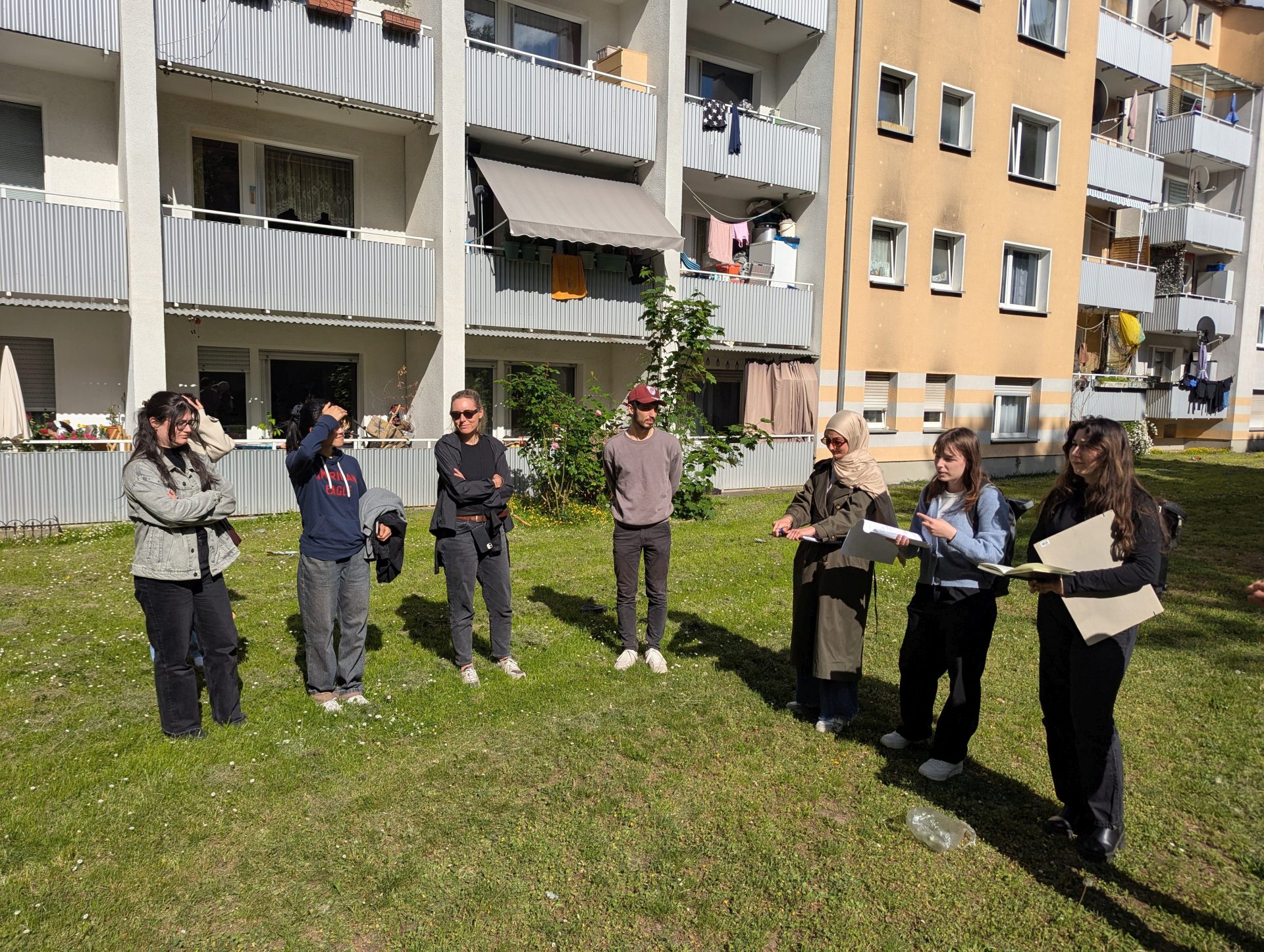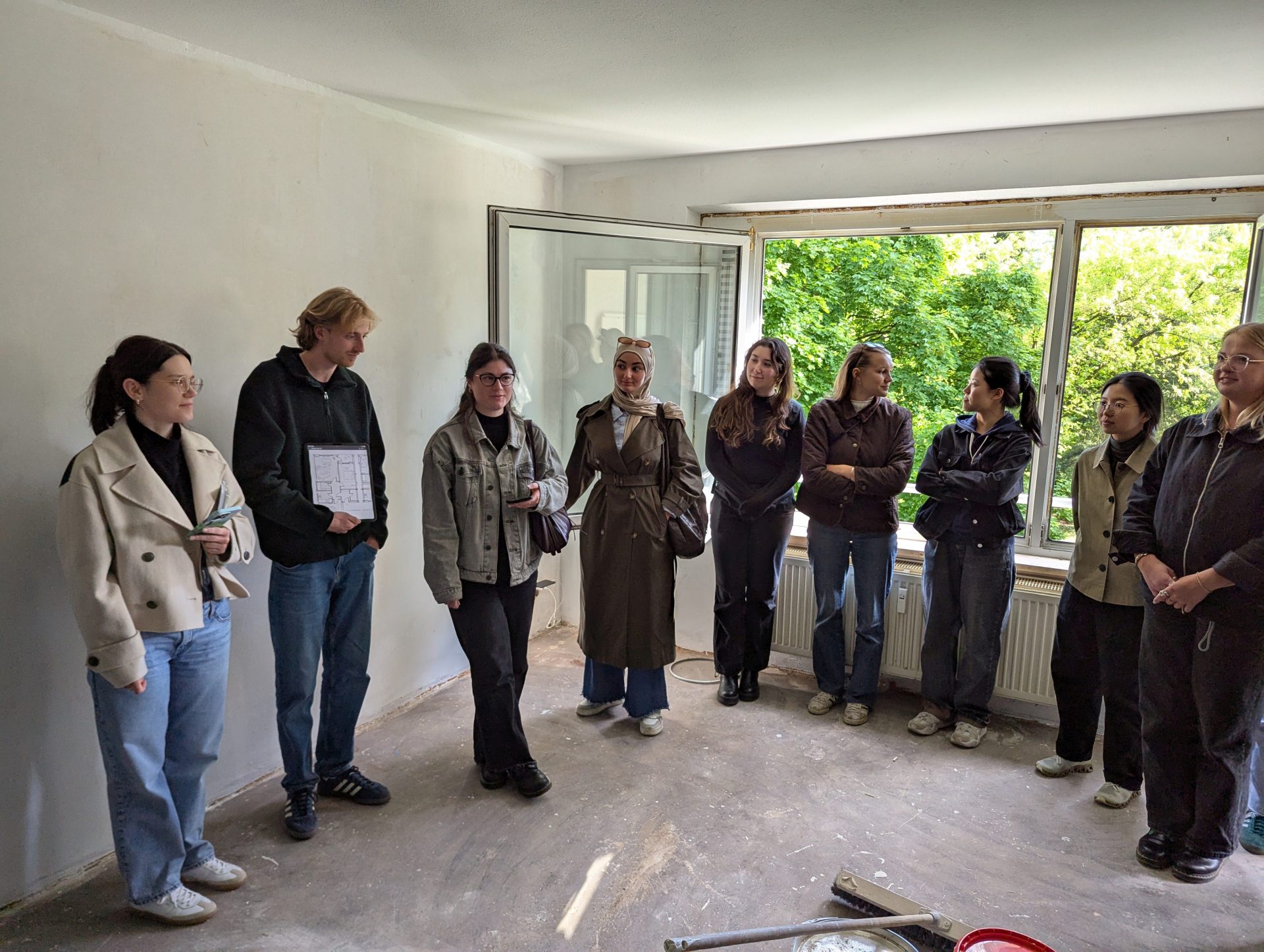 Im Anschluss bekamen die Studierenden, die sich in sechs Dreier und einer Vierer-Gruppe der Wettbewerbsaufgabe stellen, die Schlüssel zu den Liegenschaften bzw. Leerstandwohnungen und machten sich auf eigene Faust auf den Weg zu den Objekten, die allesamt in Frankfurt liegen. Zweieinhalb Tage lang haben sie sich mit dem Gebäude und der jeweiligen Wohnung vertraut gemacht, haben die Umgebung erkundet sowie Interviews mit Bewohnenden und unseren Objektmanagern geführt.
