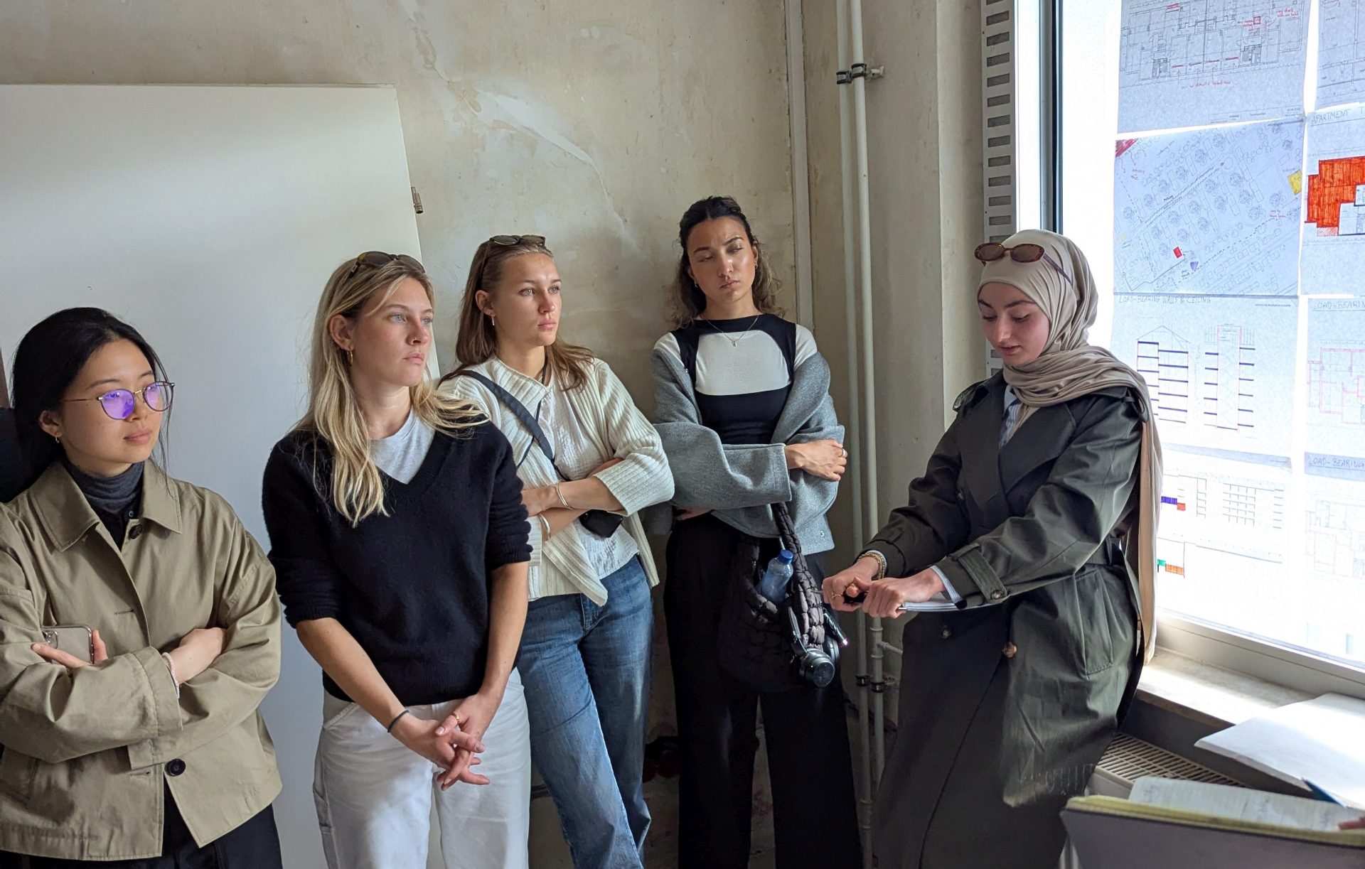 Am Freitag, dem letzten Tag der Kickoff-Woche, haben die Studierenden, Professor Tatarra, Marius Reinbach und Sven Schubert bei einer gemeinsamen Bustour alle sieben Gebäude angefahren und sich die bisherigen Ergebnisse und Erkenntnisse erläutern lassen. „Alle Gruppen haben sich in kurzer Zeit sehr intensiv und detailliert in das Thema eingearbeitet“, zeigte sich Marius Reinbach beeindruckt. „Wenn sie diesen Weg konsequent weitergehen, werden sie die Jury vor eine große Herausforderung stellen.“