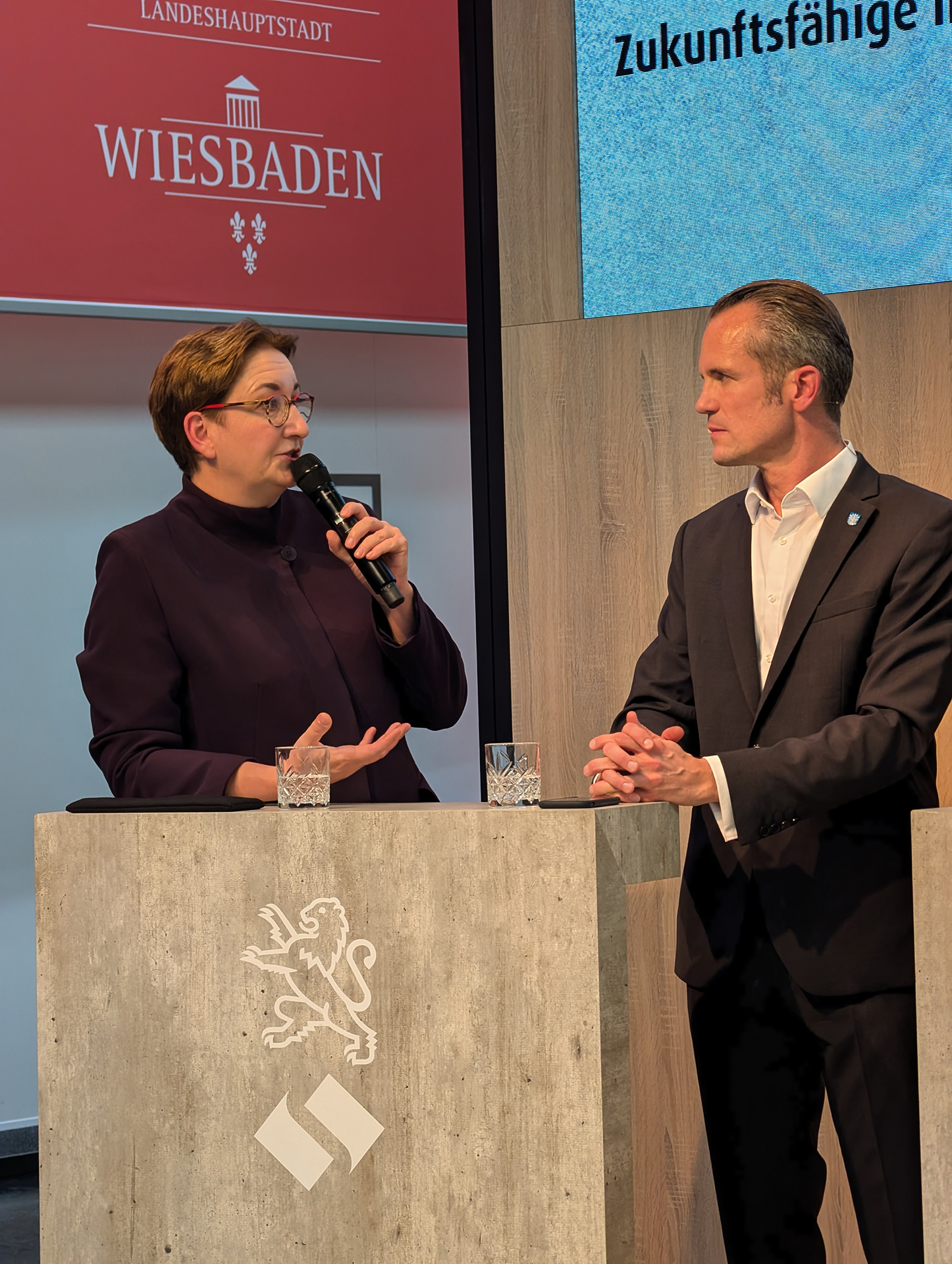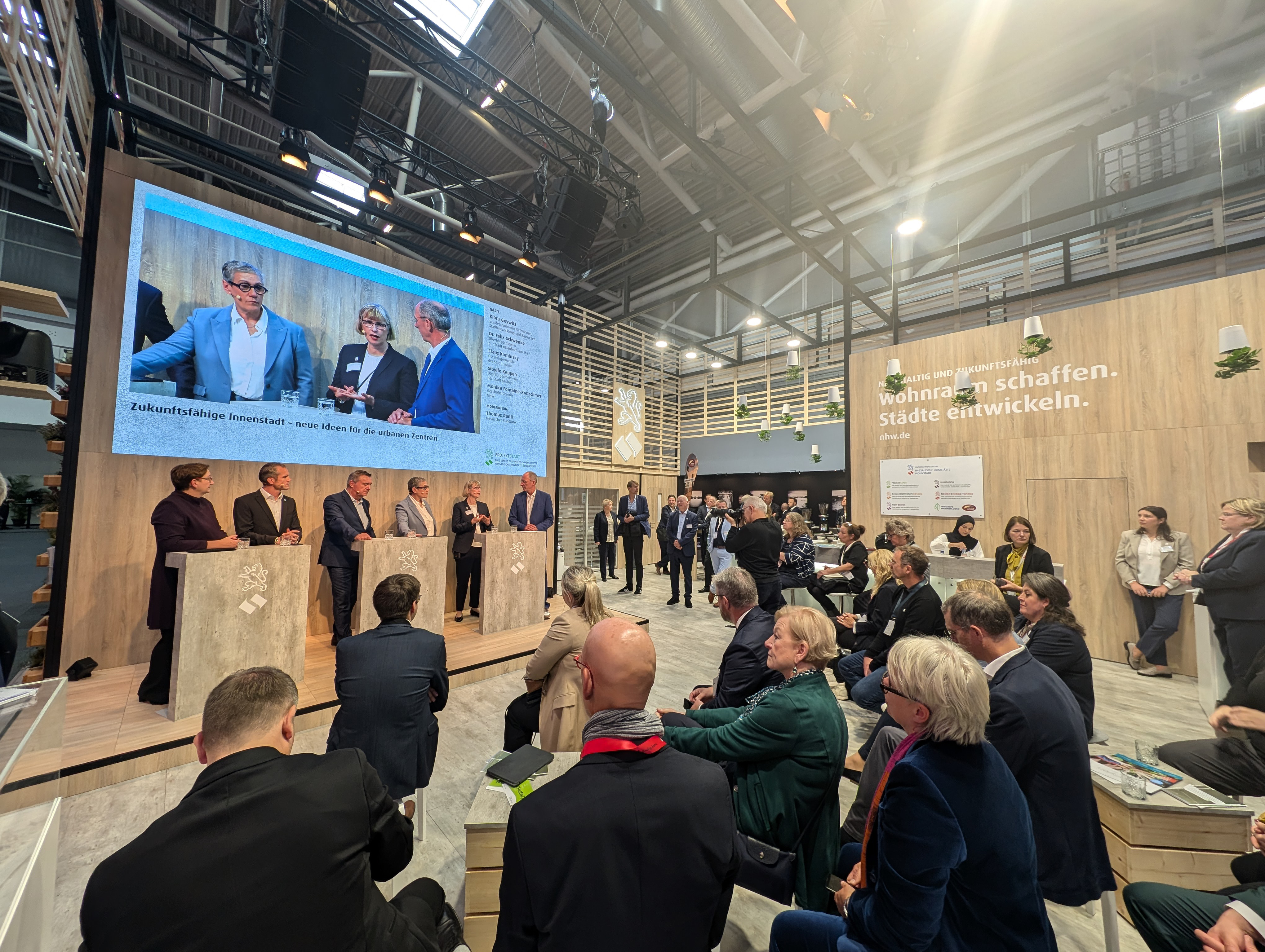 Am Messemontag standen Stadtentwicklung und Resilienz im Fokus. NHW-Geschäftsführerin Monika Fontaine-Kretschmer diskutierte mit Bundesbauministerin Klara Geywitz und Oberbürgermeistern über die Zukunftsfähigkeit von Stadtzentren. Markus Eichberger von ProjektStadt und seine Gäste erörterten Resilienz-Strategien für nachhaltige Stadtentwicklung.