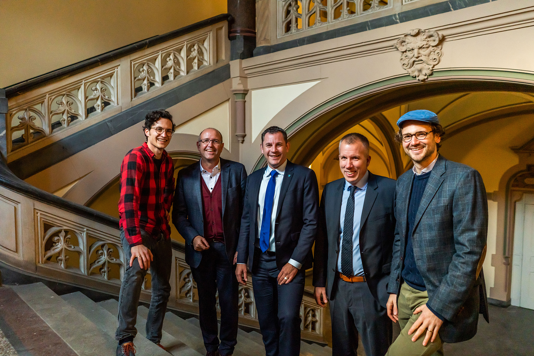 Wiesbaden – Die Unternehmensgruppe Nassauische Heimstätte | Wohnstadt plant, das denkmalgeschützte ehemalige Gerichtsgebäude in Wiesbaden umfassend zu sanieren und darin 48 Mietwohnungen sowie eine Gewerbefläche von ca. 1800 qm zu schaffen. Mieter der Gewerberäume soll die heimathafen GmbH & Co. KG werden. Das Unternehmen bietet als „Coworking Space & Café“ derzeit in der Karlstraße Raum für neues Arbeiten sowie zahlreiche Veranstaltungen für Kreative, Gründer und sozial Engagierte. Künftig soll noch mehr Raum „von vielen für viele“ im Alten Gericht entstehen. Eine entsprechende Absichtserklärung unterzeichneten dieser Tage Regionalcenterleiter Ulrich Albersmeyer und Servicecenterleiter Tobias Bundschuh für die Nassauische Heimstätte sowie die Geschäftsführer Dominik Hofmann und Albrecht von Schnurbein für den heimathafen im Beisein von Wiesbadens Oberbürgermeister Sven Gerich. „Wir freuen uns, dass in das Quartier neues Leben Einzug hält und Teile des Alten Gerichts nach so vielen Jahren wieder der Öffentlichkeit zugänglich gemacht werden“, sagte Ulrich Albersmeyer. Für Dominik Hofmann vom heimathafen ist die Kooperation mit der Nassauischen Heimstätte ein Glücksgriff. „Im alten Gerichtsgebäude warten drei Etagen mit einem einmaligen Ambiente auf uns, von denen aus wir gemeinsam mit vielen anderen Wiesbadenern frischen Wind und neue Ideen in unsere Stadt bringen möchten.“ Oberbürgermeister Sven Gerich freut sich auf „eine spannende Mischung aus Wohnen und Kreativszene. Ein innovatives Milieu wie dieses macht die Stadt Wiesbaden noch interessanter für junge Menschen“, ergänzte Gerich mit Blick auf den Neubau der Hochschule Fresenius, der direkt nebenan entsteht.