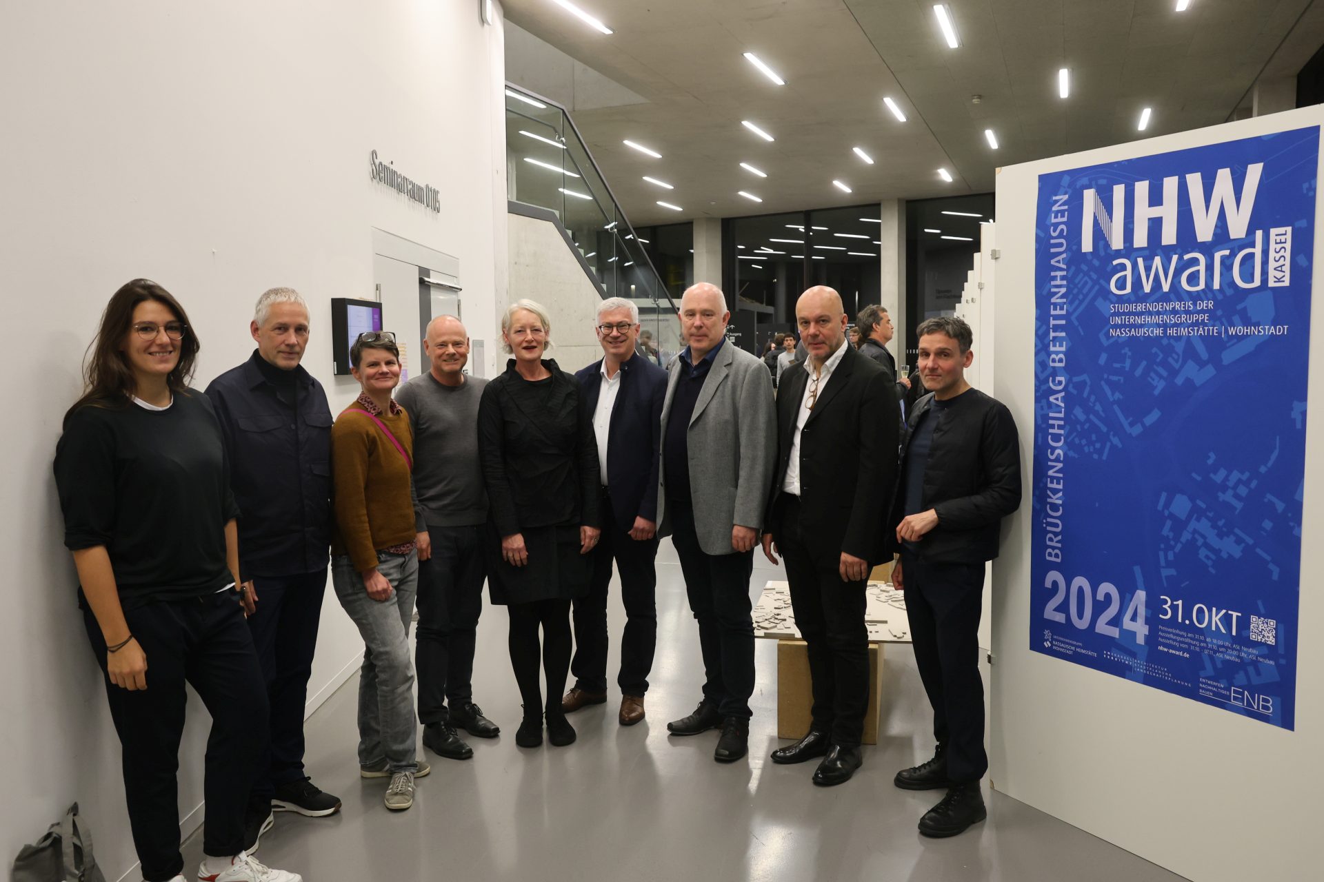 Die Jury um Markus Eichberger (NHW, Leiter Unternehmensbereich Stadtentwicklung), Ulrich Türk (NHW, Leiter Fachbereich Stadtentwicklung Hessen Nord), Tim Heide (Heide & von Beckerath Architekten, Berlin und Bauhaus-Universität Weimar), Rabea Seibert (BASE Landschaftsarchitekten PartGmbB, Berlin), Prof. Frank Lattke (Lattke Architekten, Augsburg), Annette Spielmeyer (Stadtplanungsamt Kassel) und den Vorsitzenden Prof. Dr. Cyrus Zahiri (bbzl landschaften städtebau architektur, Berlin und HS Bremen) traf ihre Entscheidung nach einer mehrstündigen Sitzung. „Alle Arbeiten waren von außerordentlich hoher Qualität und waren von großer inhaltlicher Tiefe“, so die einhellige Meinung. „Die Siegerteams sind besonders experimentierfreudig und visionär an die Aufgabe herangegangen, haben das Thema Brückenschlag noch ein Stück besser gelöst und für diesen schwierigen Ort sehr gute neue Ideen entwickelt.“