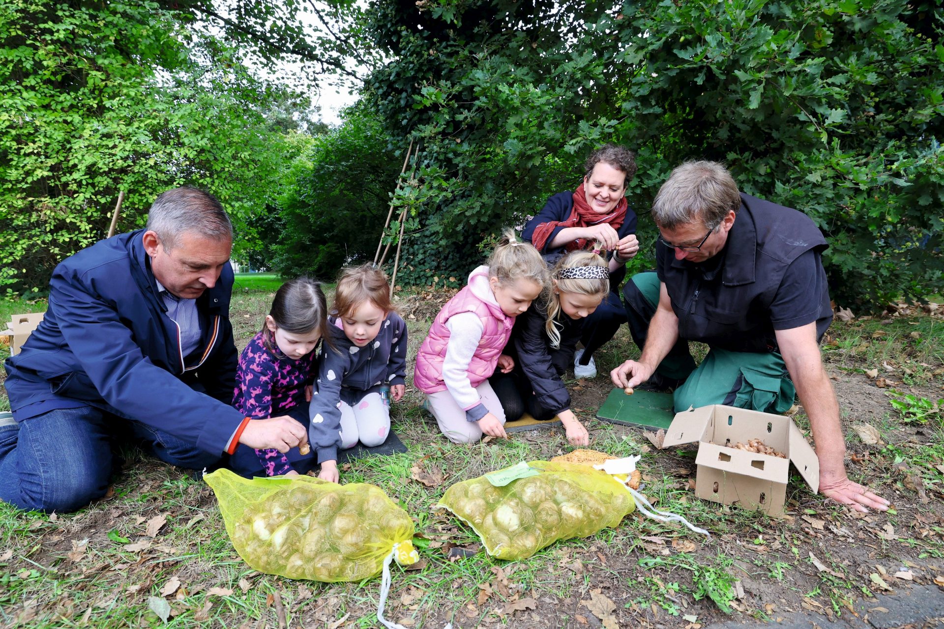 Ebenfalls im Rahmen des Mobilitätstags Waldau pflanzten Kinder der Kita Waldau II gemeinsam mit der kommunalen Arbeitsförderung der Stadt Kassel, Projekt GaLaMa, 1.250 Blumenzwiebeln. Die NHW hat die Fläche gegenüber der Kita sowie die Blumenzwiebeln zur Verfügung gestellt. Bald wird hier eine bunte Mischung aus Hyazinthen, Tulpen, Narzissen und Krokussen das Quartier verschönern.