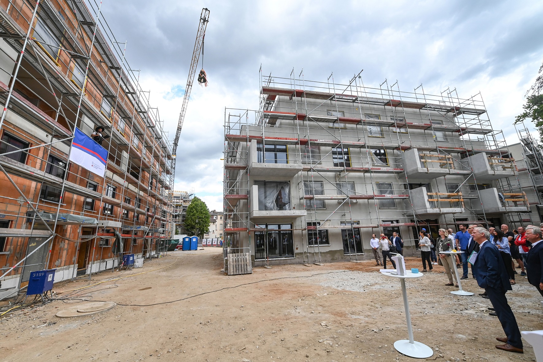 Dr. Thomas Hain, Leitender NHW-Geschäftsführer: „Wir wollen gemäß unserer Wachstumsstrategie perspektivisch von derzeit 60.000 auf 75.000 Wohnungen wachsen. Dieses Ziel verfolgen wir konsequent, aber immer mit Blick auf unseren gesellschaftlichen Auftrag. Auch im GustavsHof schaffen wir bezahlbaren und gleichzeitig qualitätsvollen Wohnraum.“ NHW-Geschäftsführerin Monika Fontaine-Kretschmer lobte die beteiligten Firmen sowie die Bauleitung. „Alle arbeiten hoch engagiert und motiviert und tragen dazu bei, dass wir zu 100 Prozent im Terminplan liegen.“ Hauptzielgruppe sind Familien mit einem oder zwei Kindern, die eine moderne, bezahlbare Wohnung mit guter Infrastruktur suchen. „Wir kommen hier einmal mehr unserem Auftrag nach, Entlastung auf dem Wohnungsmarkt zu schaffen und den Anstieg der Mieten zu dämpfen“, ergänzte Fontaine-Kretschmer. Außerdem fügen wir unserem umfangreichen Investitionsprogramm, das den Bau von 4.900 Wohnungen vorsieht, einen weiteren wichtigen Baustein hinzu.“ Bis 2023 investiert die NHW rund 2,1 Milliarden Euro in Neubau und Bestandsverbesserung, alleine 1,4 Milliarden Euro in den Neubau.“