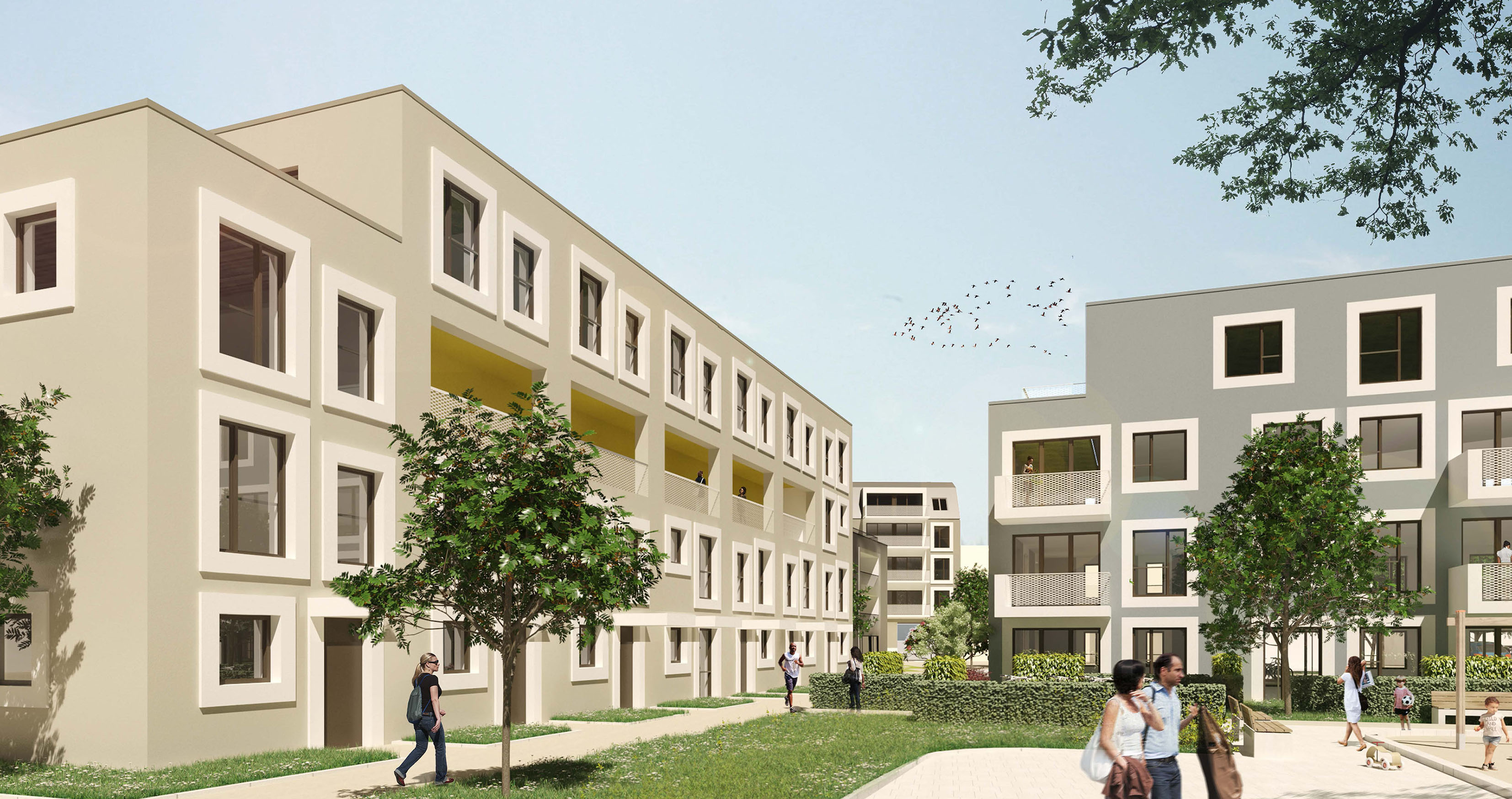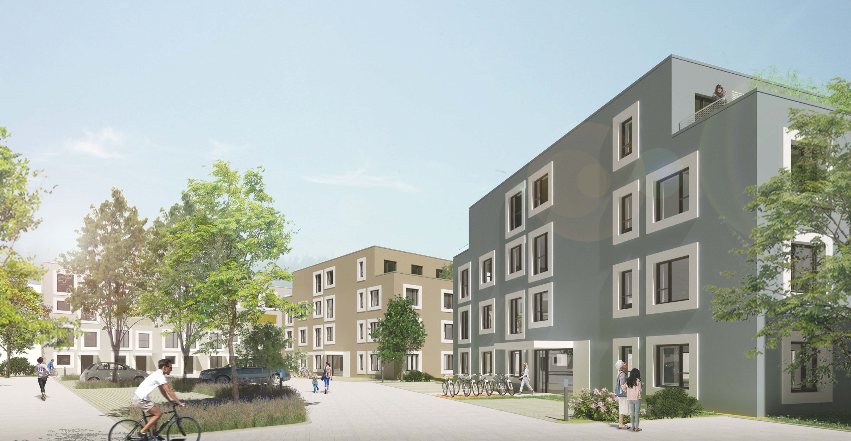 Das Grundstück befindet sich im gründerzeitlichen Senefelderquartier in der südlichen Innenstadt. Das Areal ist von Bestandsgebäuden umschlossen und wird in zweiter Reihe bebaut. Auf knapp 6.800 qm entsteht eine sehr aufgelockerte Bebauung. Die 70 Wohnungen verteilen sich auf sechs Wohngebäude, die großzügig von Wegen sowie Grün- und Spielflächen durchzogen sind. Die Gebäude – eines hat fünf Geschosse, die anderen vier – sind zum Teil unterkellert, als KfW 55-Energiehaus konzipiert, werden mit Fernwärme versorgt und bieten eine Gesamtwohnfläche von knapp 5.600 qm. Die ersten Mieter können voraussichtlich Anfang Februar 2022 einziehen. Die Miete für die freifinanzierten Wohnungen wird zwischen 11 und 13 Euro pro qm liegen, für die geförderten bei rund 6,90 Euro. Das Projekt soll mit dem NaWoh-Qualitätssiegel für Nachhaltigkeit im Wohnungsbau zertifiziert werden. Die Gesamtinvestition beläuft sich auf rund 22,5 Millionen Euro.