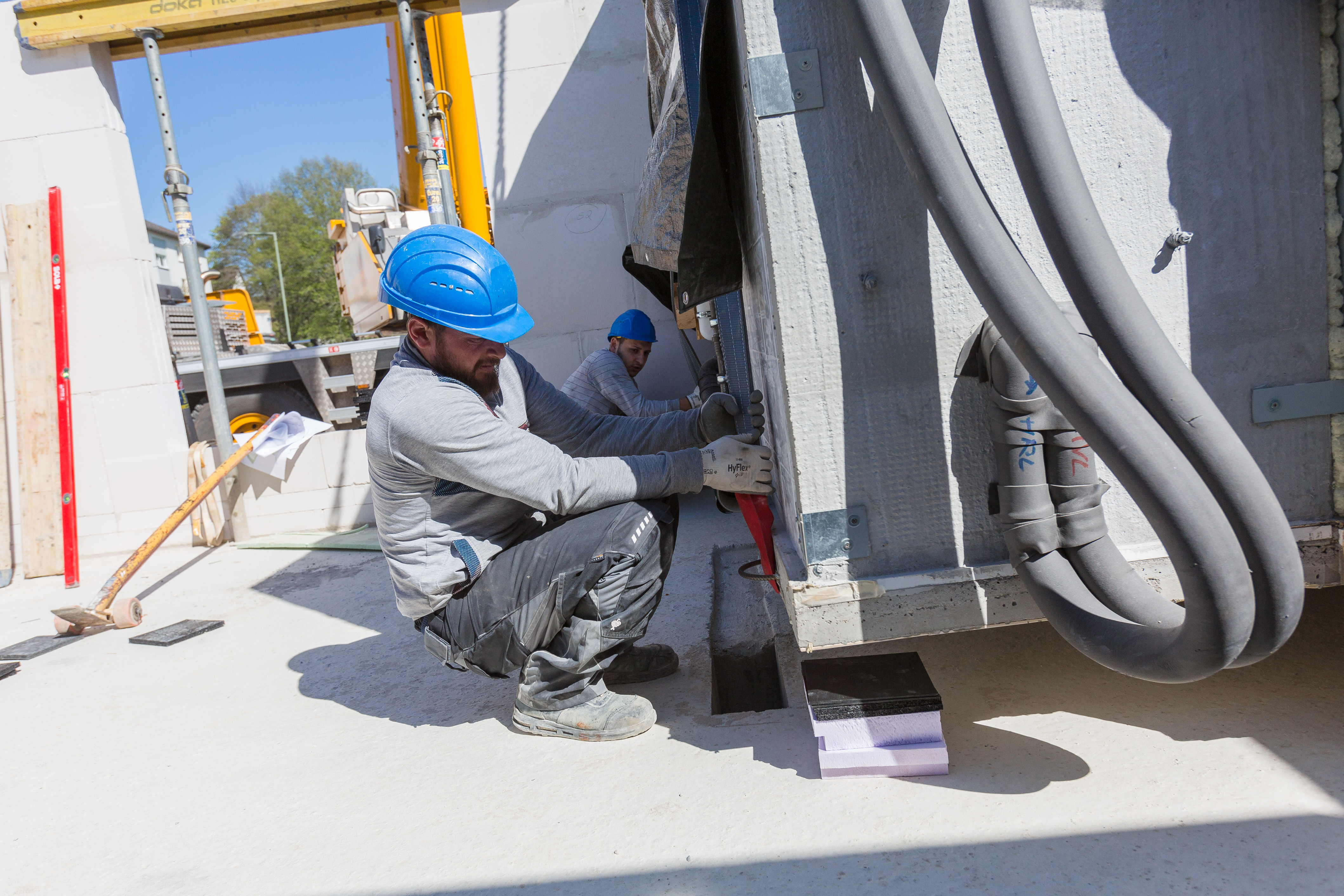 Die vier neuen Gebäude "Am Felsenkeller" in Kassel werden gleichzeitig, jedoch jeweils um eine Etage zeitversetzt, errichtet. Während für das dritte Haus gerade die Fundamentplatte entsteht, werden in den Erdgeschoss-Rohbau des ersten Neubaus bereits vier Fertigbäder eingebaut. Bei der Anlieferung und Montage von vier neuen Bädern war die "hessenschau" vor Ort und hat die Projektbeteiligten in einem Beitrag begleitet. Das Prinzip der Fertigbäder kommt beispielsweise oftmals bei Hotelneubauten zum Einsatz, seltener im Wohnungsbau: Für die NHW war es eine Premiere. Die Bäder werden in der Fabrik bis hin zu Details wie dem Toilettenpapierhalter zusammengebaut, an die Baustelle geliefert und von einem Kran an die richtige Position gesetzt. Nach der Feinjustierung werden die Bäder für den Rest der Bauzeit verschlossen. Sie müssen lediglich noch an die Ver- und Entsorgungsleitungen angeschlossen werden, bevor man sie zur Endreinigung vor Bezug der Häuser wieder öffnet. Die Hintergründe und was sich unser Unternehmen von dem Pilotprojekt in Kassel erhofft, lesen Sie in unserer Presseinformation zum Thema.