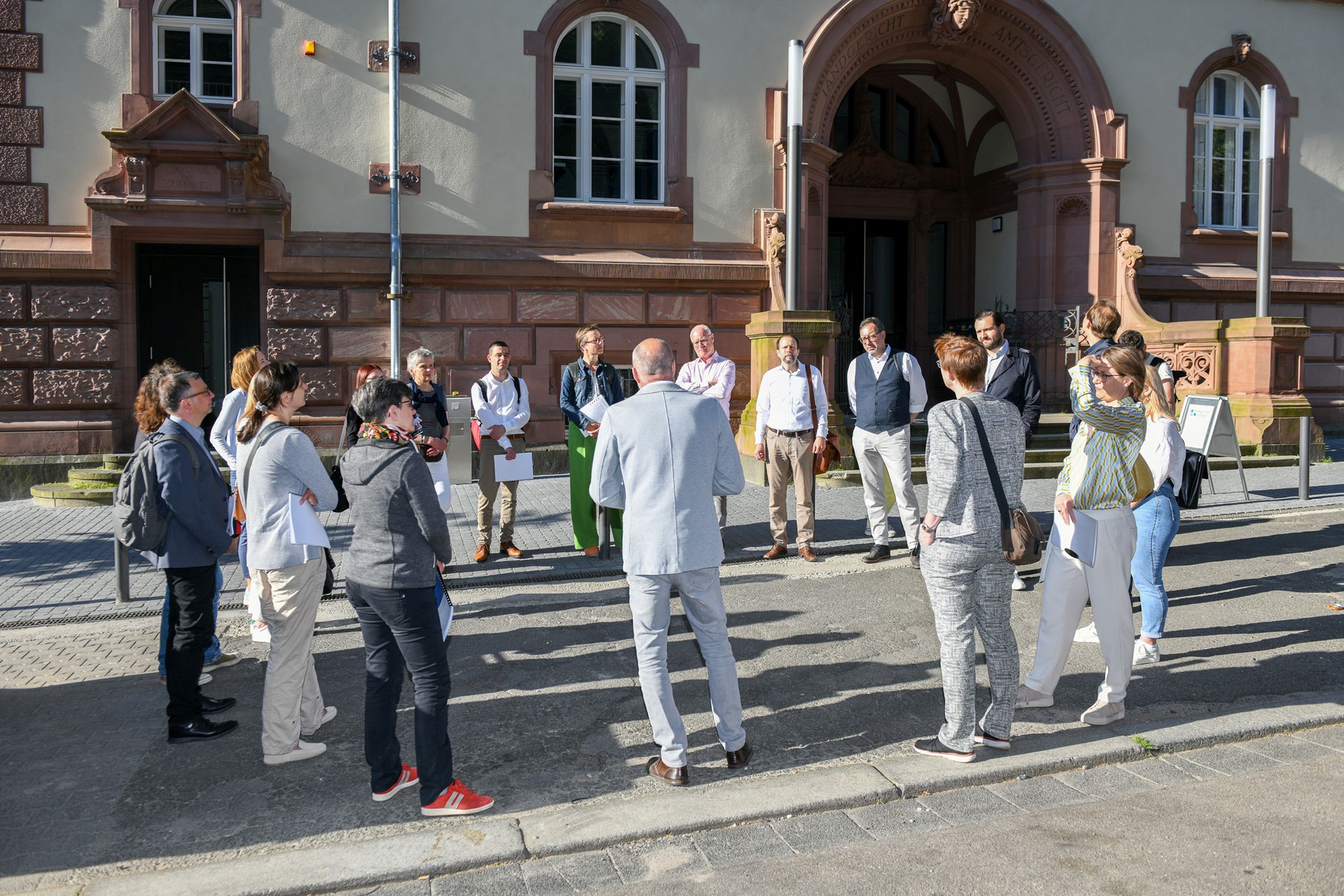 Es wird langsam spannend: Das Alte Gericht in Wiesbaden hat es unter die letzten acht Bewerber beim diesjährigen Denkmalschutzpreis des Landes Hessen geschafft. Im Rahmen einer etwa 45-minütigen Begehung machte sich vor kurzem die Jury um den Vorsitzenden Prof. Dr. Markus Harzenetter, Präsident des Landesamtes für Denkmalpflege Hessen, ein umfassendes Bild von dem altehrwürdigen Gebäude, das seit kurzem in neuem Glanz erstrahlt. Außerdem waren Helge Bitzer, Leiter Neubau der NHW, sowie Vertreter:innen der Bauaufsicht und Unteren Denkmalschutzbehörde der Stadt Wiesbaden dabei.