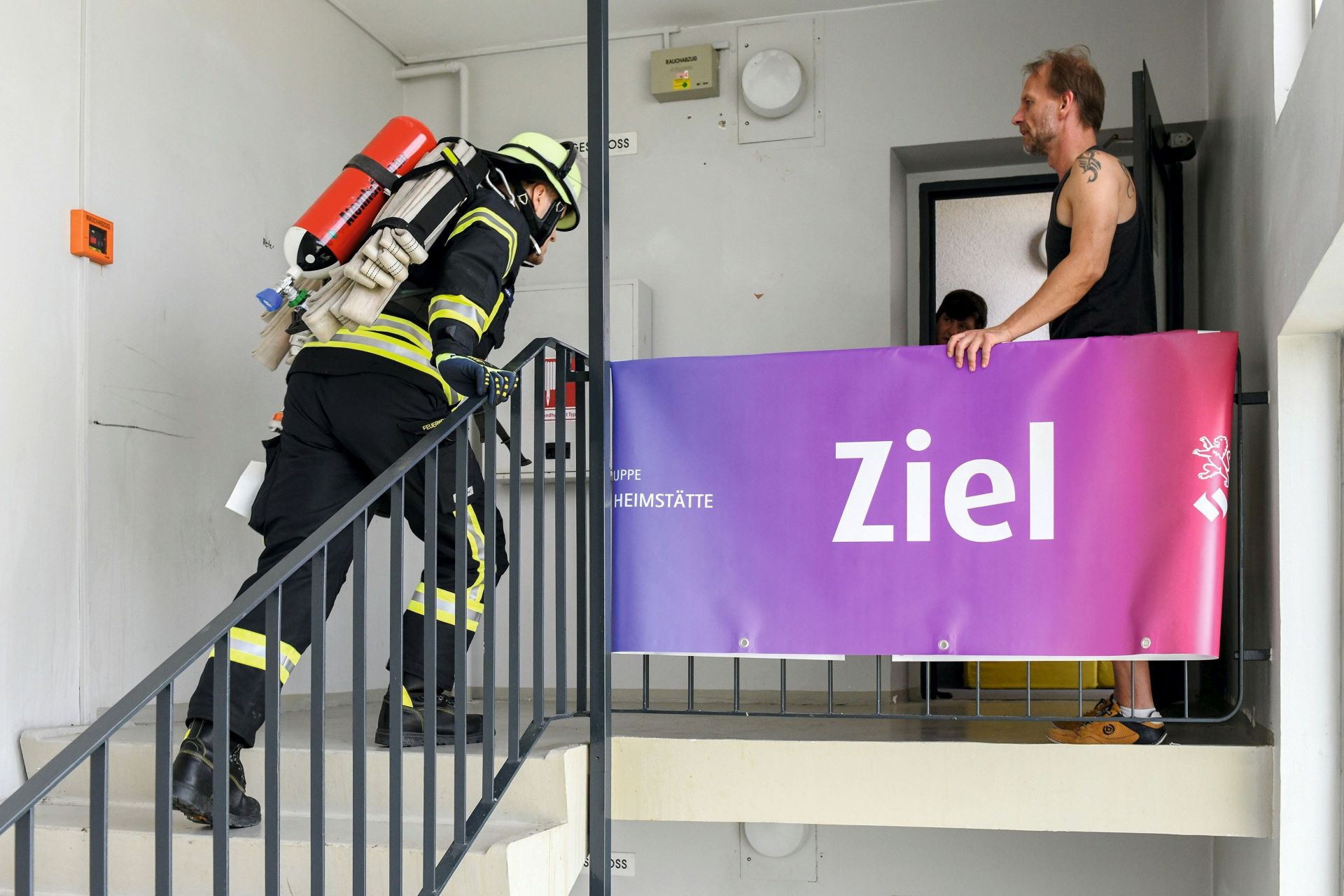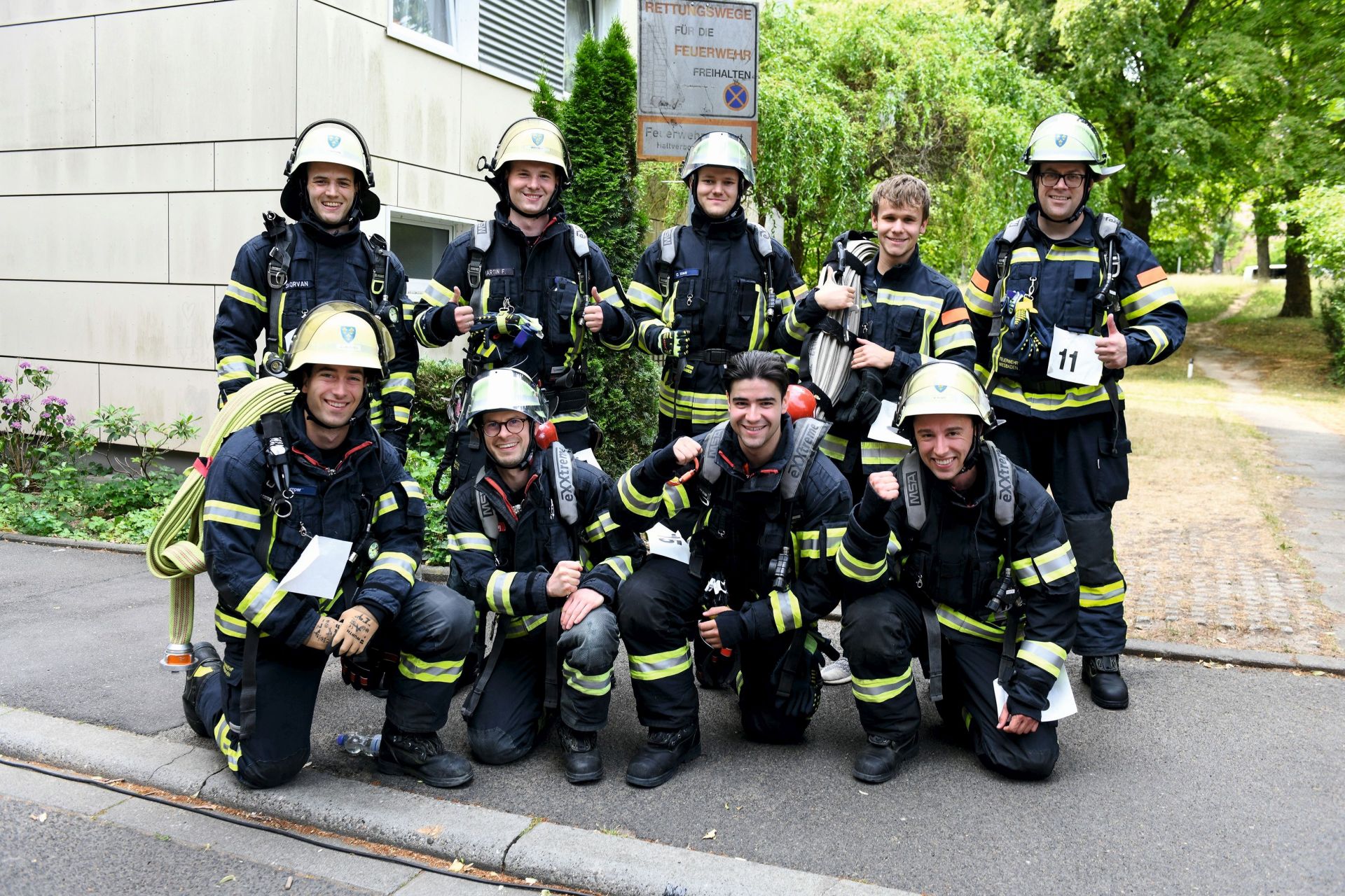 Wiesbaden – Alle waren sich einig: Es war wieder einmal eine gelungene Veranstaltung. Wo normalerweise Bewohner ihre Einkaufstüten hochschleppen, sprinteten am Samstag 36 Hobby-Läuferinnen und -Läufer nach oben. Beim inzwischen 6. Hochhauslauf der Unternehmensgruppe Nassauischen Heimstätte | Wohnstadt (NHW) wurde das Treppenhaus eines Miethochhauses der NHW in Wiesbaden-Klarenthal einmal mehr zur Laufstrecke. Bei schwülen Temperaturen erstürmten sie die 192 Stufen des Gebäudes in der Hermann-Brill-Straße. Gesamtschnellster war Serkan Bilgin mit 45,1 Sekunden. Ein Highlight war die Teilnahme der Freiwilligen Feuerwehren Wiesbaden Stadtmitte und Klarenthal. Die neun Männer nutzten den Lauf als Training für den Notfall. Sie haben die zwölf Stockwerke in voller Sicherheitsmontur inklusive Helm und mit rund 30 kg Gepäck, also mit Sauerstoffflasche und Schlauch, erklommen. Mit Benni Brandes stellte die Feuerwehr auch den schnellsten Läufer der Altersgruppe 36-50 Jahre.