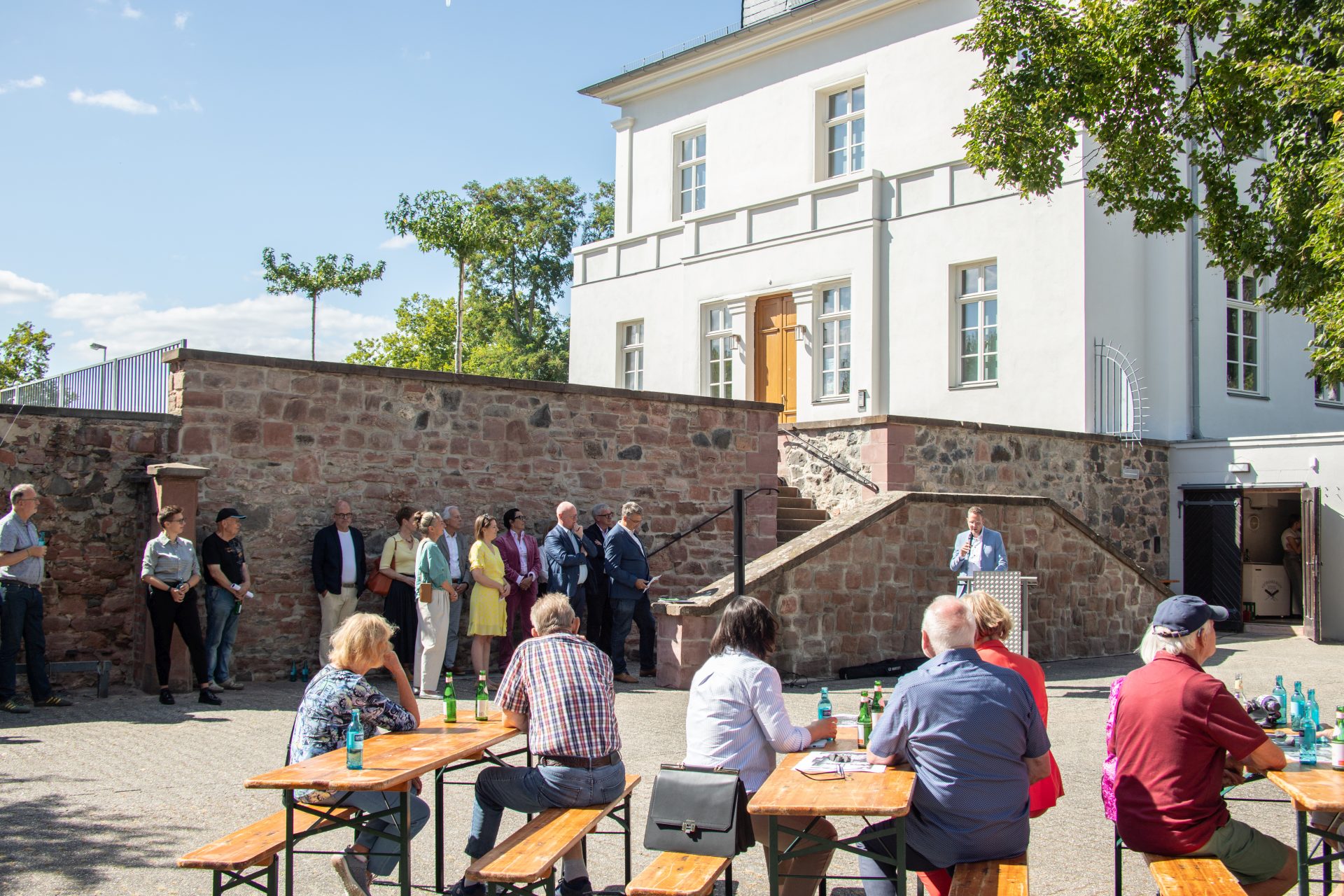 Beim Festakt zum Abschluss der Arbeiten waren neben Bürgermeister Manfred Ockel und Vertretern der städtischen Gremien unter anderem Christoph Degen, Staatssekretär im Hessischen Ministerium für Wissenschaft und Forschung, Kunst und Kultur, die Landtagsabgeordneten Kerstin Geis, Sabine Bächle-Scholz und Nina Eisenhardt sowie vom Landesamt für Denkmalpflege Präsident Markus Harzenetter und Oberkonservatorin Henriette von Preuschen zu Gast auf dem Platz vor dem Schlossgebäude. Von der NHW waren Markus Eichberger (Leiter Unternehmensbereich Stadtentwicklung), Marion Schmitz-Stadtfeld, Leiterin des zuständigen Fachbereichs Integrierte Stadtentwicklung sowie die Projektleiterinnen Alexa von Wedel, Nicole Thamm und Mara Benedetto Teodoro dabei.