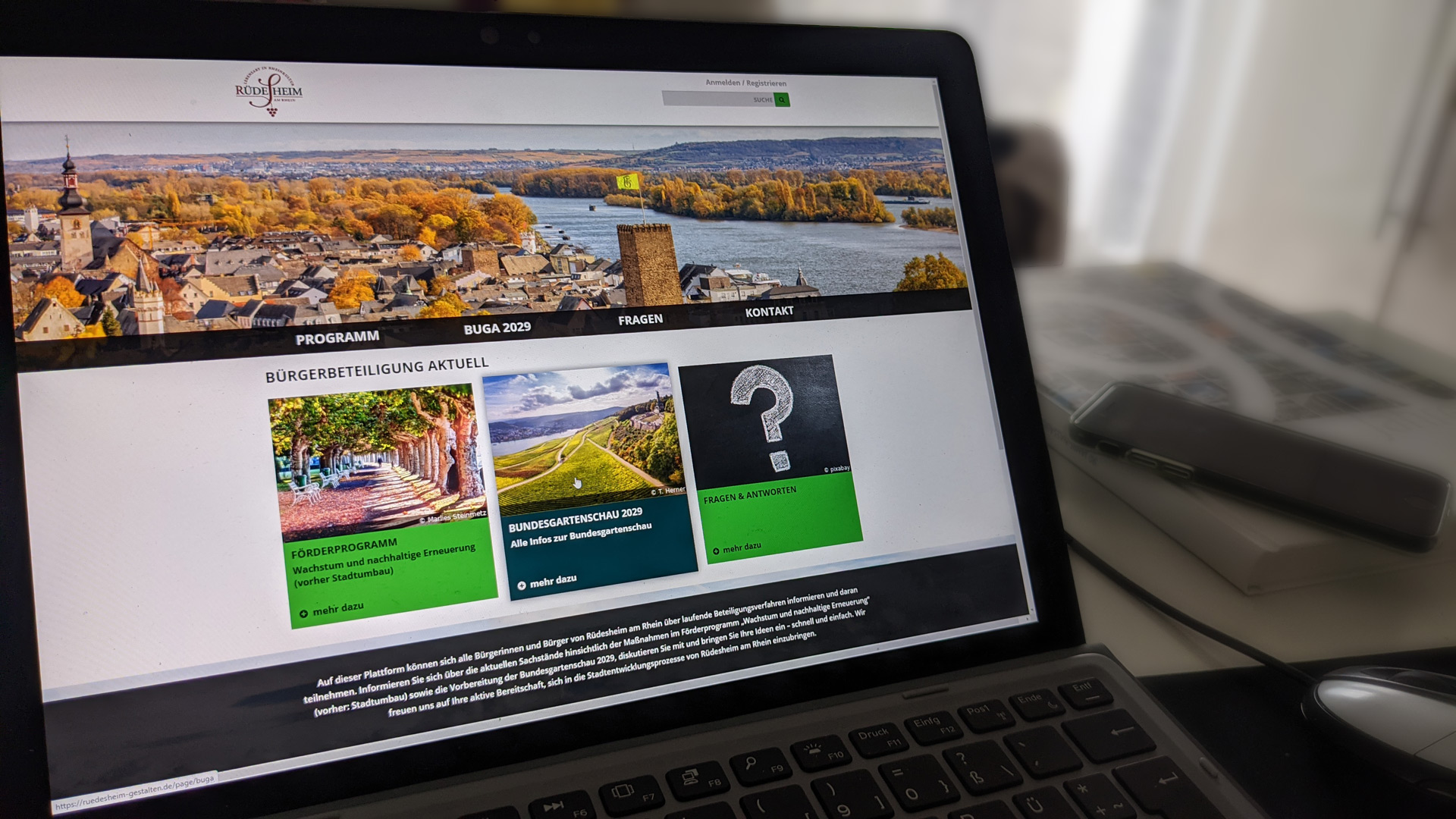Die Stadt Rüdesheim möchte den Lacher Graben im Bereich des Stadtparks bis zur Mündung offenlegen. Auf diese Weise wird die Parkanlage gestalterisch aufgewertet und attraktiver und außerdem ein Beitrag zur Verbesserung des Kleinklimas und der Bodendiversität geleistet. Darüber hinaus soll der Kernbereich des Gewerbegebiets für den Radverkehr besser erschlossen werden, u.a. mit einem Ausbau der Beschilderung. Die Maßnahmen sollen auch den innerstädtischen Radverkehr fördern. Bewohner sollen dazu motiviert werden, ihre Einkäufe nicht mehr nur mit dem Auto zu erledigen. Zu diesem Zweck werden vermehrt Fahrradständer, Ladestationen für E-Bikes und eine Bike-Sharing-Station zur Verfügung gestellt. Dritter Baustein der Förderung ist die Erstellung eines Konzepts zur Schaffung von Retentionsräumen als vorbeugende Hochwasserschutzmaßnahme. Die Untere Wasserschutzbehörde fordert neue Retentionsräume für die Durchführung der im ISEK für das Fördergebiet „Auf der Lach“ geplanten Maßnahmen. Davon betroffen sind auch die zentralen Flächen der Bundesgartenschau, die 2029 im Welterbe Oberes Mittelrheintal mit Rüdesheim als einem von drei Schwerpunktstandorten stattfindet. Inklusive des kommunalen Eigenanteils werden die Maßnahmen rund 1,35 Millionen Euro kosten. In Hanau waren Bürgermeister Klaus Zapp, Franziska Feid von der Rüdesheimer Fremdenverkehrsgesellschaft sowie Ida Marie Olssøn und Peter Foißner von der ProjektStadt dabei.