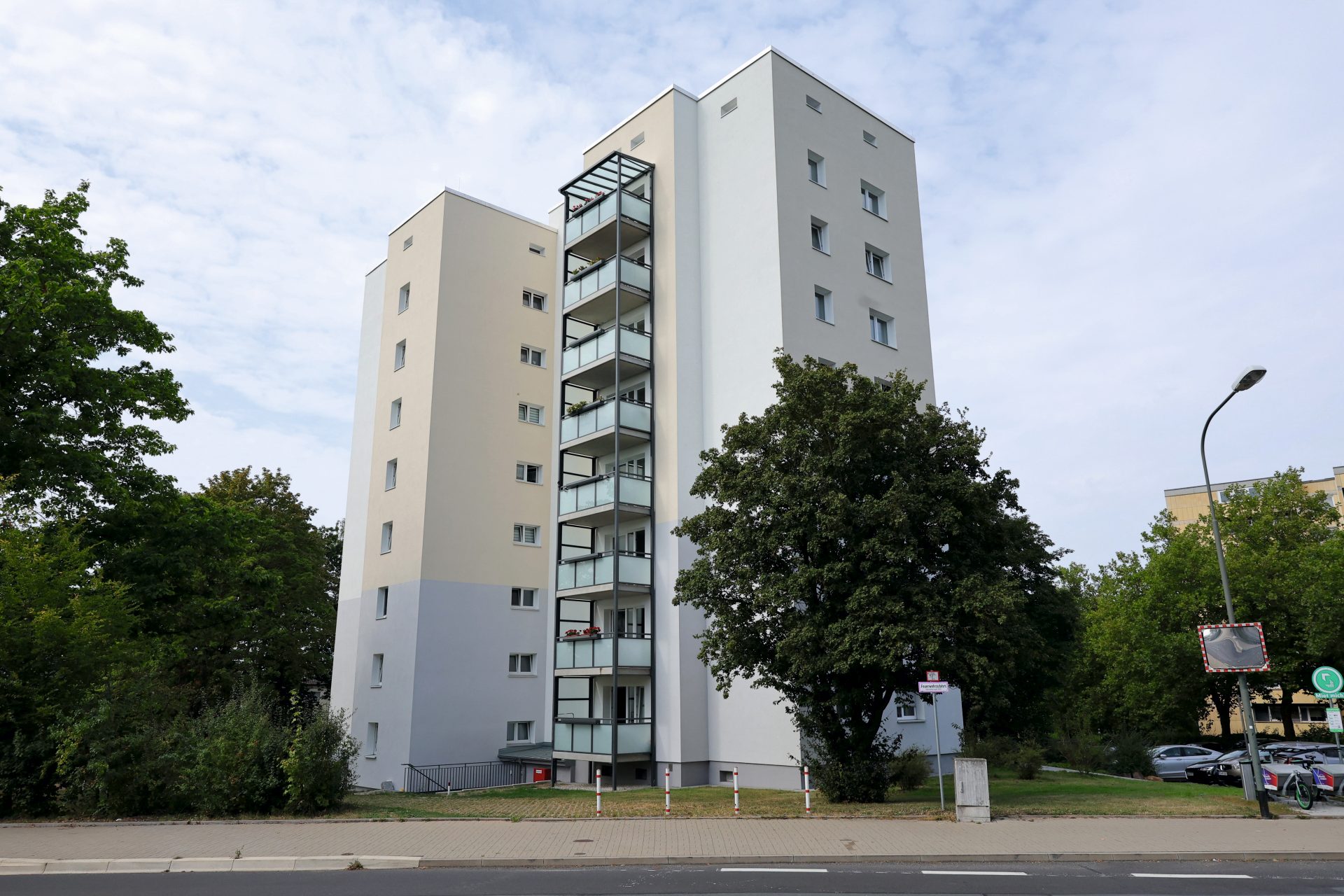 Durch die Modernisierung haben die Mieter jetzt deutlich mehr Wohnkomfort. Alle Gebäude wurden für die energetische Erneuerung mit neuen Fenstern ausgestattet, die Außenfassaden sowie der Dachboden und die Kellerdecken wurden gedämmt. Im selben Arbeitsschritt wurde auch die Dacheindeckung erneuert. Für die Wärmeerzeugung bleibt weiterhin der Fernwärmeanschluss zuständig, die Wärmeübergabestation vom Straßennetz ins Haus wurde auf den technisch neusten Stand gebracht. Ein Pluspunkt für die Sicherheit der Bewohner wird über die neuen Brand- und Rauchschutztüren für den Zugang zu Dachgeschoss und Keller geschaffen.