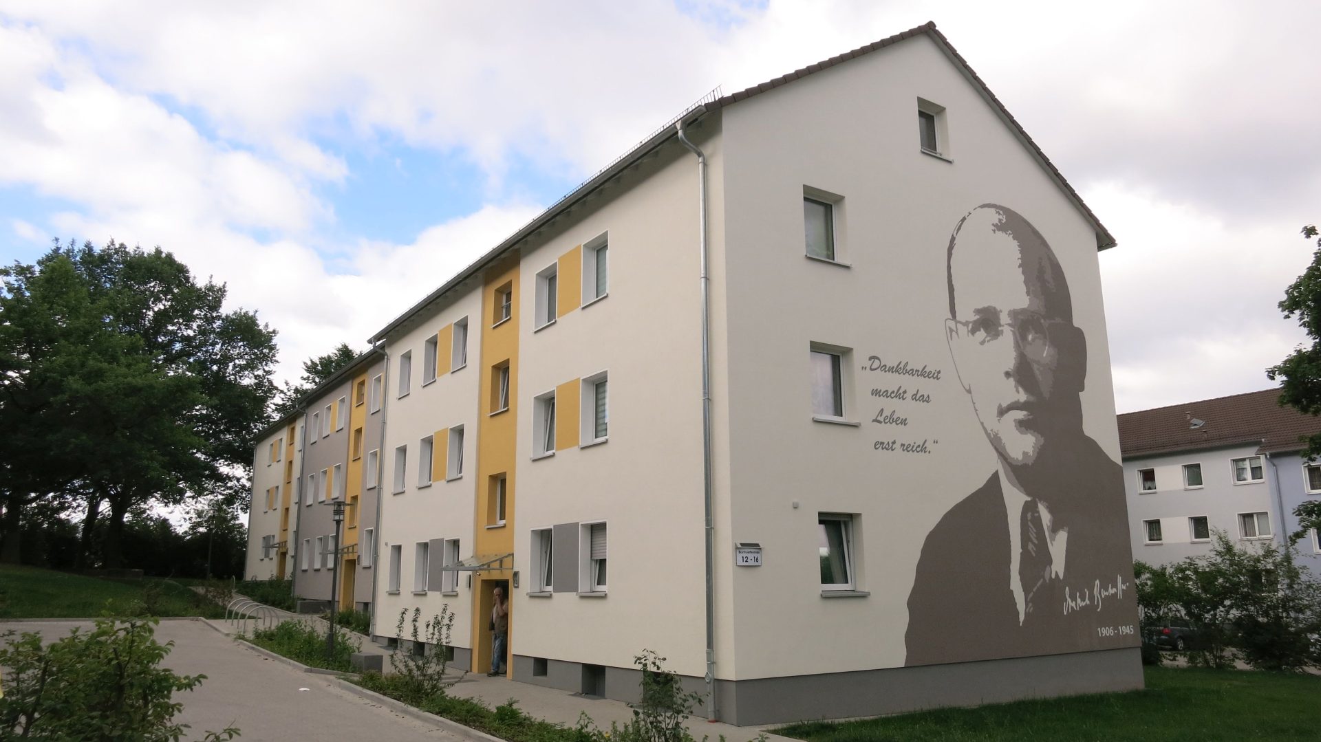 Im Außenbereich wurden nach der Modernisierung die Zugangswege und Müllstellplätze erneuert und – wo notwendig –Feuerwehrzufahrten als Ergänzung des zweiten Rettungsweges angelegt. In dem achtgeschossigen Gebäude in der van-Galen-Straße 20 wurden zudem die Balkone sowie der Aufzug erneuert. Eine Besonderheit wurde in der Bonhoeffer-Straße 12 realisiert. Die sonst schmucklose Giebelseite des Gebäudes wurde mit dem Profil und einem Zitat des im Widerstand gegen den Nationalsozialismus aktiven Theologen Dietrich Bonhoeffer versehen. Die Worte „Dankbarkeit macht das Leben erst reich“ sollen zum Nachdenken anregen. Ziel der Aufwertung ist es, über das Fassadengemälde eine Verbundenheit zu schaffen, die auf anderen Wegen sonst nur schwer zu erreichen ist. Weitere Beispiele für Fassadenmalerei der NHW finden sich unter anderem in Fulda-Aschenberg und in Kassel-Lohfelden.
