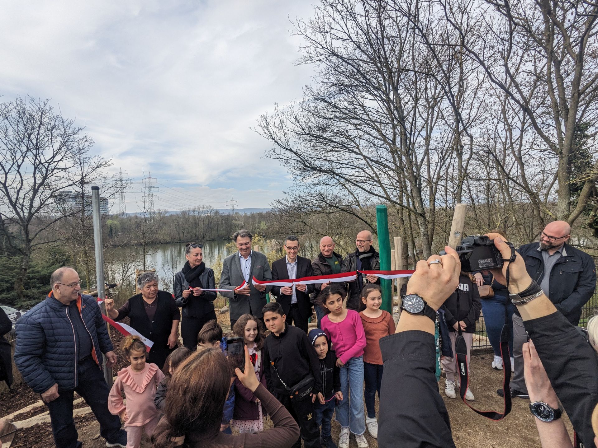 Kelsterbach – Die Quartiersentwicklung auf der Mainhöhe ist ein echtes Gemeinschaftsprojekt. Stadt Kelsterbach, die NHW sowie deren Stadtentwicklungsmarke ProjektStadt arbeiten seit zehn Jahren daran, aus dem einstigen Problemviertel ein lebendiges soziales Zentrum und angesagtes Wohnviertel zu machen. Dementsprechend waren alle Beteiligten vertreten: NHW-Regionalcenterleiter Thomas Türkis, Kelsterbachs Bürgermeister Manfred Ockel und Alexa von Wedel (Projektleiterin ProjektStadt | Integrierte Stadtentwicklung) haben den Abenteuerspielplatz im Beisein vieler Anwohner und weiterer Interessierter feierlich eröffnet und dabei symbolisch das rot-weiße Band durchschnitten.