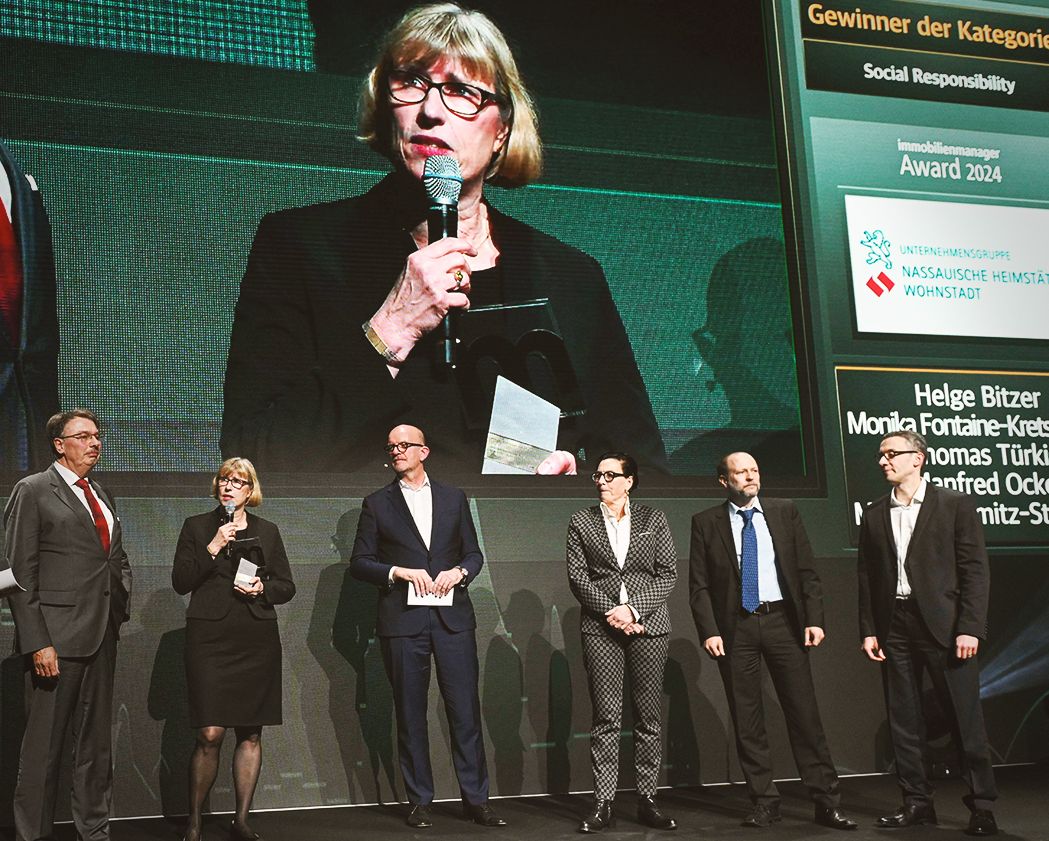 Frankfurt am Main / Köln / Kelsterbach - Mehr als 500 Gäste aus der Immobilienwirtschaft kamen am 7. März 2024 in der Kölner Motorworld zusammen, um das Finale des immobilienmanager-Award 2024 zu erleben. Einer der Preisträger in der Kategorie Social Responsibility: die Unternehmensgruppe Nassauische Heimstätte | Wohnstadt (NHW) und die Stadt Kelsterbach mit der Quartiersentwicklung „Auf der Mainhöhe“. Für die NHW ist dies nach 2021 (in der Kategorie Nachhaltigkeit) bereits der zweite immobilienmanager-Award. NHW-Geschäftsführerin Monika Fontaine-Kretschmer, Marion Schmitz-Stadtfeld, Leiterin Integrierte Stadtentwicklung ProjektStadt, und Kelsterbachs Bürgermeister Manfred Ockel nahmen den Preis auf der inzwischen 16. Verleihung der renommierten Branchenauszeichnung entgegen.