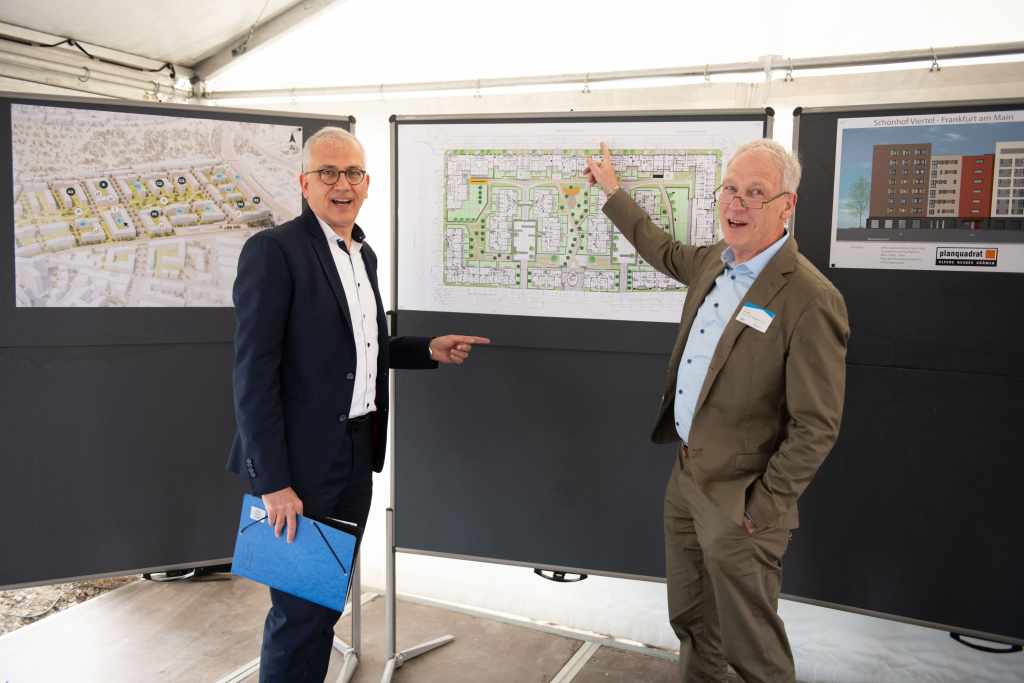 „Der Wohnungsdruck ist in Frankfurt enorm hoch. Mit diesem Neubauprojekt tragen die NHW und Instone deutlich zur Entlastung bei und schaffen auch städtebaulich ein gelungenes Quartier in einer zentralen, ansprechenden Lage mit sehr guter sozialer Infrastruktur sowie Anbindung an den öffentlichen Nahverkehr“, sagte Dr. Thomas Hain, Leitender NHW-Geschäftsführer, bei der Grundsteinlegung im Beisein von Staatsminister Tarek Al-Wazir und Mike Josef, Planungsdezernent der Stadt Frankfurt. Ralf Werner, Geschäftsführer der Instone Real Estate: „Mit der Grundsteinlegung der ersten Baufelder haben wir den nächsten wichtigen Schritt auf dem Weg zur Schaffung eines sozial durchmischten und familienfreundlichen Quartiers erreicht. Das Projekt wird seinen zukünftigen Bewohnern eine hohe Lebensqualität sowie auch eine hohe architektonische Vielfalt bieten.“ Die Voraussetzungen dafür wurden durch einen Architektenwettbewerb geschaffen, der im Vorfeld für alle Baufelder stattgefunden hatte.