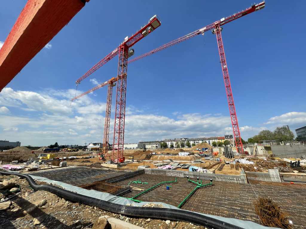 Auf den Baufeldern D und E entstehen auf einer Grundstücksfläche von ca. 26.500 m2 in Summe 612 Wohnungen. Angeboten wird ein bunter Mix aus 2 bis 6-Zimmer-Wohnungen, der für Singles und Paare ebenso geeignet ist wie für Familien mit Kindern. Alle Wohnungen verfügen über Balkone, Terrassen oder Loggien. Dabei liegen 217 Wohneinheiten, davon 30 Prozent gefördert, in der Verantwortung von Instone, die darüber hinaus auch eine viergruppige Kita und ein Studierendenhostel mit 184 Gästezimmern realisieren. Die verbleibenden 395 Wohneinheiten realisiert die NHW, davon werden 45 Prozent im Rahmen des geförderten Wohnungsbaus gebaut. Die öffentlich geförderten Wohnungen der NHW sollen für ca. 5,00 Euro/m2 vermietet werden, die freifinanzierten liegen durchschnittlich bei ca. 13 Euro. Voraussichtlich bezugsfertig sind die Wohnungen auf diesen beiden Baufeldern im Jahr 2024.