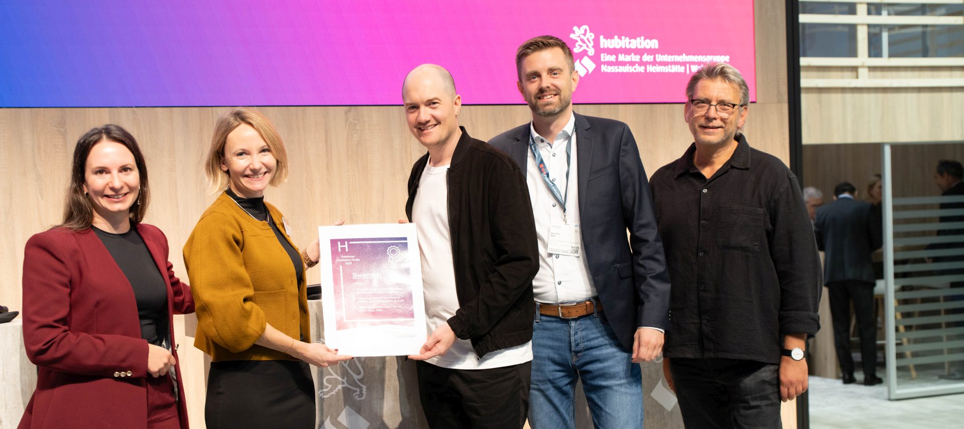 München – Zum vierten Mal hat die Unternehmensgruppe Nassauische Heimstätte | Wohnstadt (NHW) den Höhepunkt ihrer WoWi Challenges live an ihrem Messestand auf der EXPO REAL in München ausgetragen: die hubitation finals. Als strahlende Sieger setzten sich Swarmlab aus Berlin und sein Tandem-Partner Volkswohnung Karlsruhe mit der Challenge „Biodiverse Oasen statt Monotonie“ durch. Swarmlab-Co-Founder und Geschäftsführer Moritz Lohmann sowie Pia Hesselschwerdt (Volkswohnung Karlsruhe, Mitglied der Geschäftsführung, Leiterin Kommunikation und Unternehmensentwicklung) nahmen die Auszeichnung entgegen. Das Gewinner-Startup darf sich gleich dreifach freuen: Über die Teilnahme am Panel „Inside Innovation“ auf der Transform & Beyond-Bühne direkt am Folgetag auf der EXPO, über einen exklusiven Pitch im Arbeitskreis Digitale Geschäftsmodelle der Arbeitsgemeinschaft Großer Wohnungsunternehmen (AGW) am 28. November in Frankfurt am Main sowie ein “Rundum-Sorglos-Paket” für die EXPO REAL 2026.