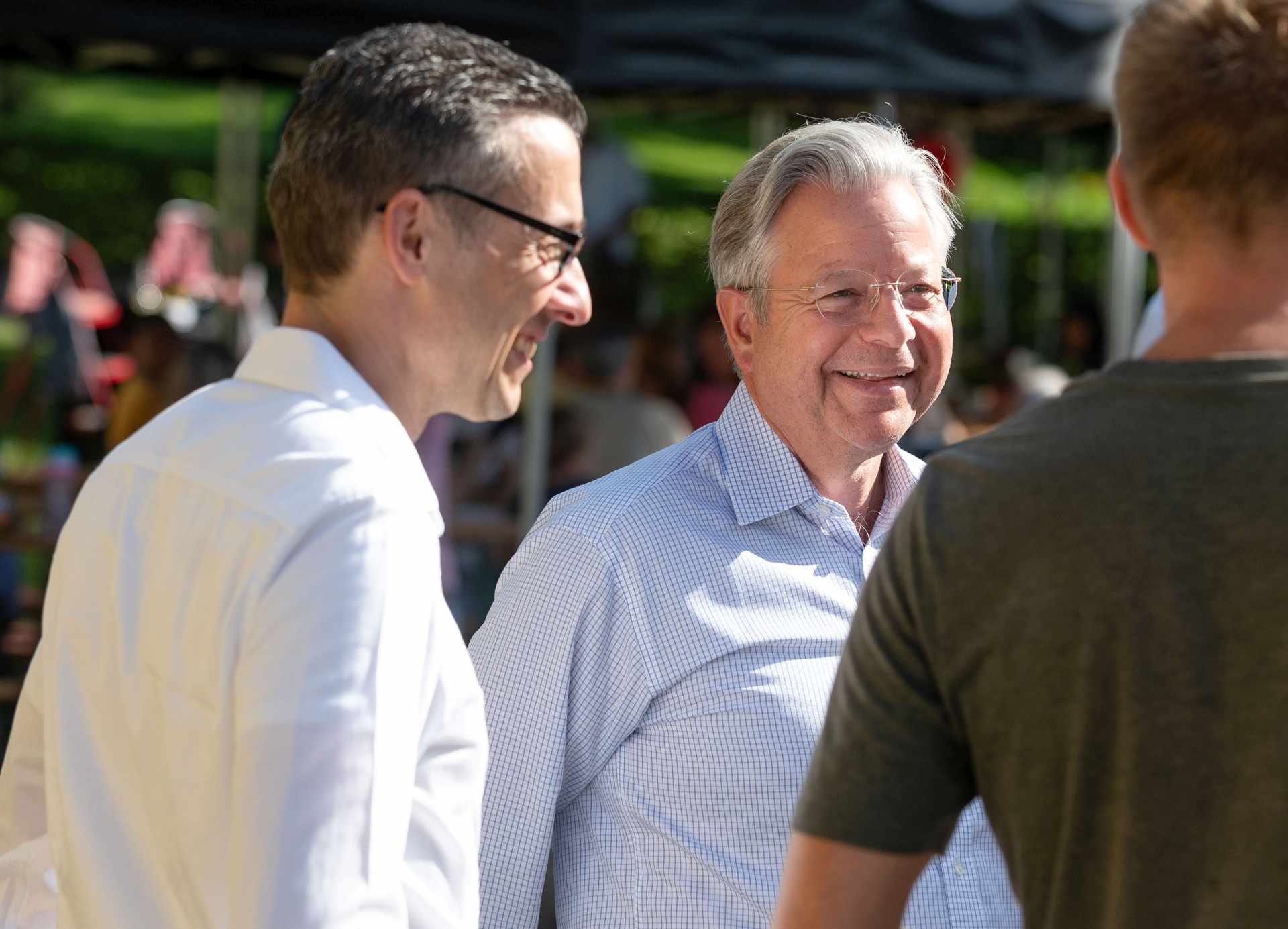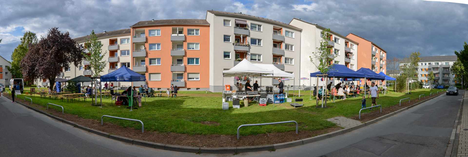 Im Rahmen einer energetischen Quartiersentwicklung hat die Unternehmensgruppe Nassauische Heimstätte | Wohnstadt ihre 108 Wohnungen in Darmstadt-Bessungen auf einen modernen und zeitgemäßen Stand gebracht. Die Bestandsgebäude wurden vollständig modernisiert und aufgestockt, wodurch 24 neue Wohnungen in Holzbauweise entstanden sind. Durch die energetische Sanierung sinkt der CO2 Verbrauch um rund 65 Prozent. Von einer neuen Heizzentrale aus werden alle Wohnungen im Quartier künftig mit Nahwärme versorgt. In den Wohnungen werden die Bäder und Küchen neu gefliest, neue Vorstell-Balkone wurden angebaut und für die energetische Verbesserung eine Dämmung an Kellerdecken und Wänden angebracht sowie dreifach verglaste Fenster eingesetzt. Die Erneuerung der barrierefreien Hauseingänge sowie neu gestaltete Außenanlagen sorgen für ein ansprechendes Ambiente. Der Abschluss der Anstrengungen hier war Anlass für ein Fest: NHW-Geschäftsführer Dr. Constantin Westphal und NHW-Regionalcenterleiter Thomas Türkis feierten gemeinsam mit den Bewohnern den Abschluss der Maßnahmen.